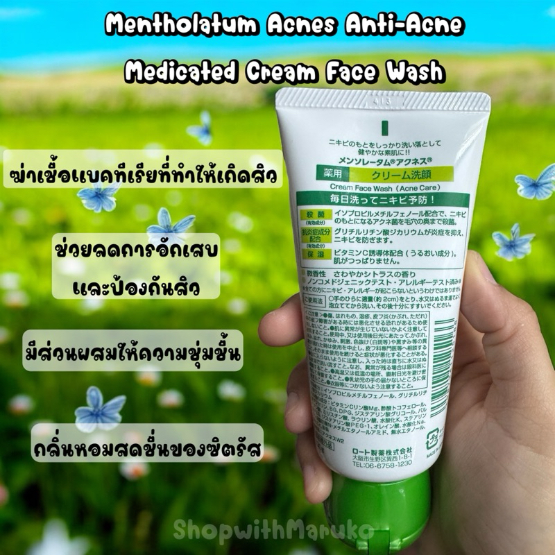ครีมล้างหน้าสำหรับคนเป็นสิว ของแท้จากญี่ปุ่น Mentholatum Acnes Anti-Acne Medicated Cream Face Wash 130g.