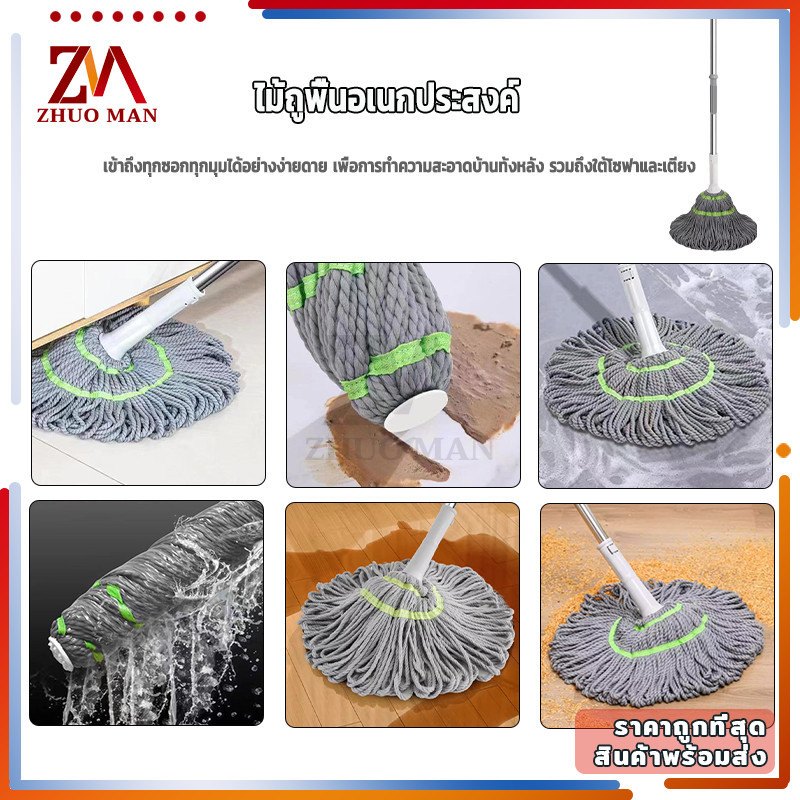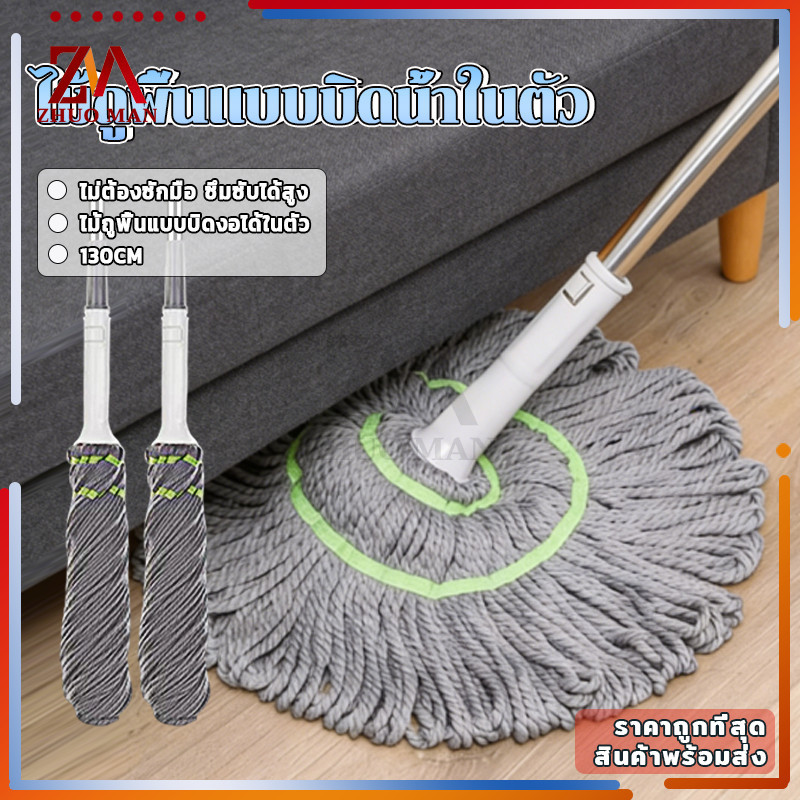 ไม้ถูพื้นบิดน้ำในตัว เเบบบิดน้ำในตัว ไม้ถูพื้นแบบบิด ระบบบิดผ้าอัตโนมัติช่วยประหยัดแรงและไม่จำเป็นต้องล้างด้วยมือ