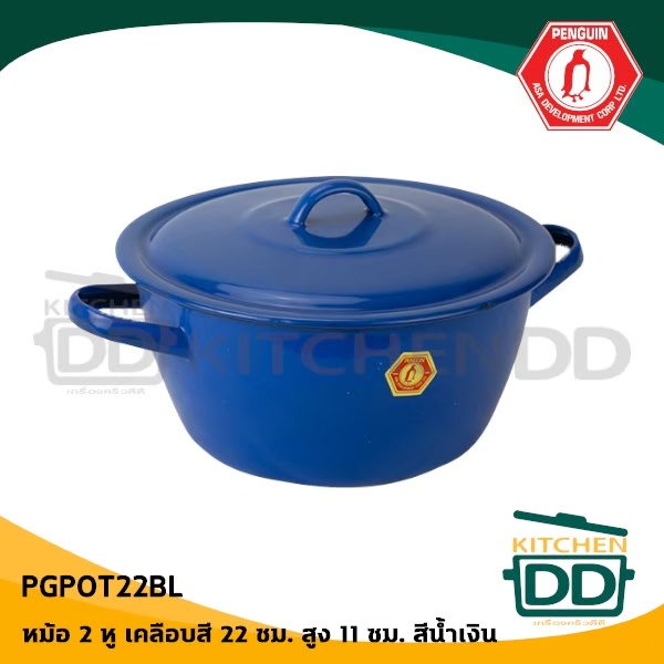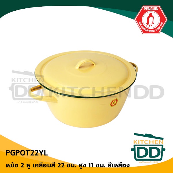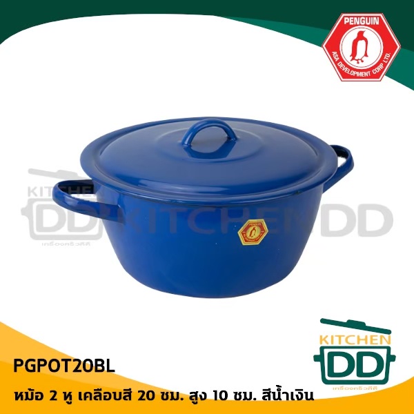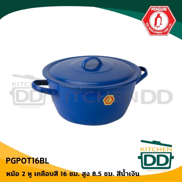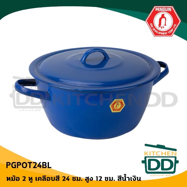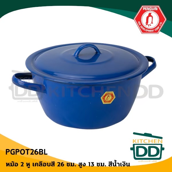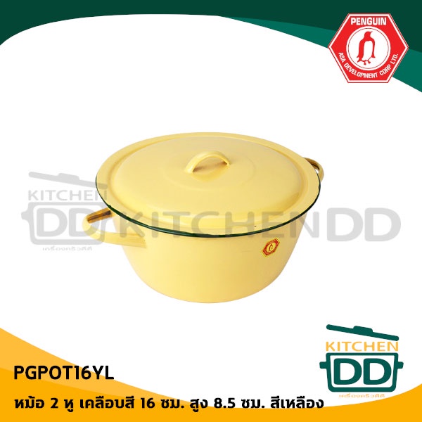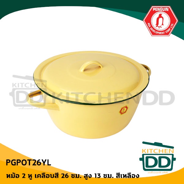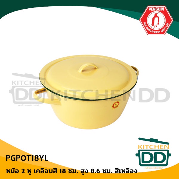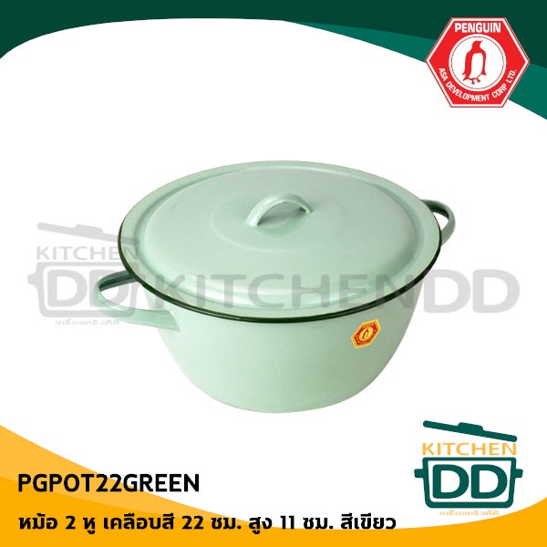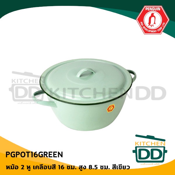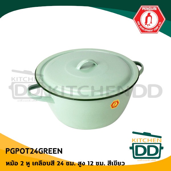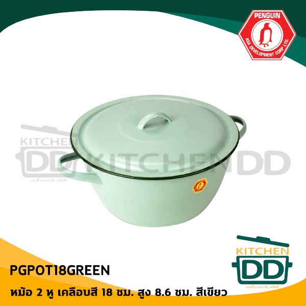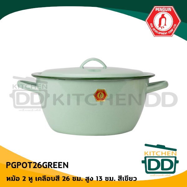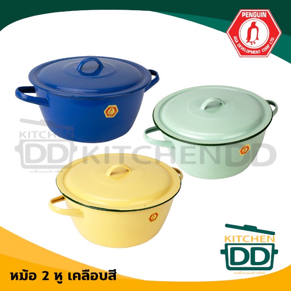 หม้อเคลือบ 2 หู Penguin นกเพนกวิน 16/18/20/22/24/26 ซม. เขียวมินต์/เหลือง/น้ำเงิน - 1 ใบ