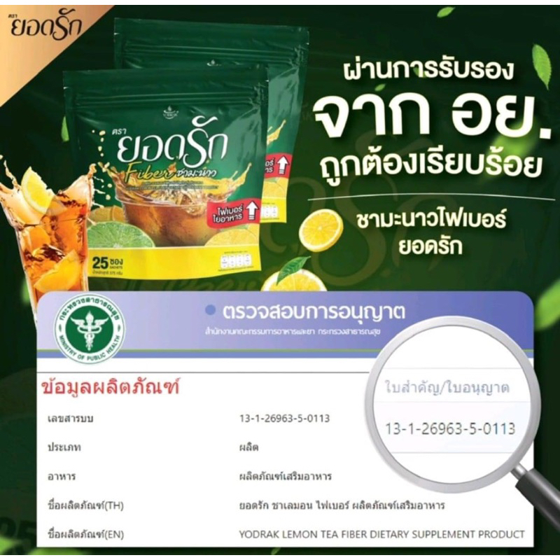 ใหม่!!! ไฟเบอร์ชามะนาว ชามะนาวยอดรัก ล้างลำไส้ ปรับสมดุลระบบขับถ่าย (1 ห่อ 25 ซอง)