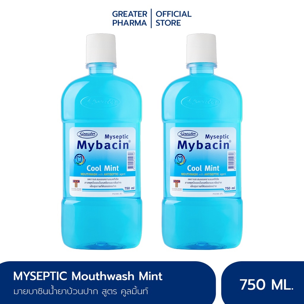 น้ำยาบ้วนปาก สูตรคูลมิ้นท์ ลดการสะสมของแบคทีเรีย ให้ความสดชื่น ไม่แสบปาก ขนาด 750มล. MyBacin