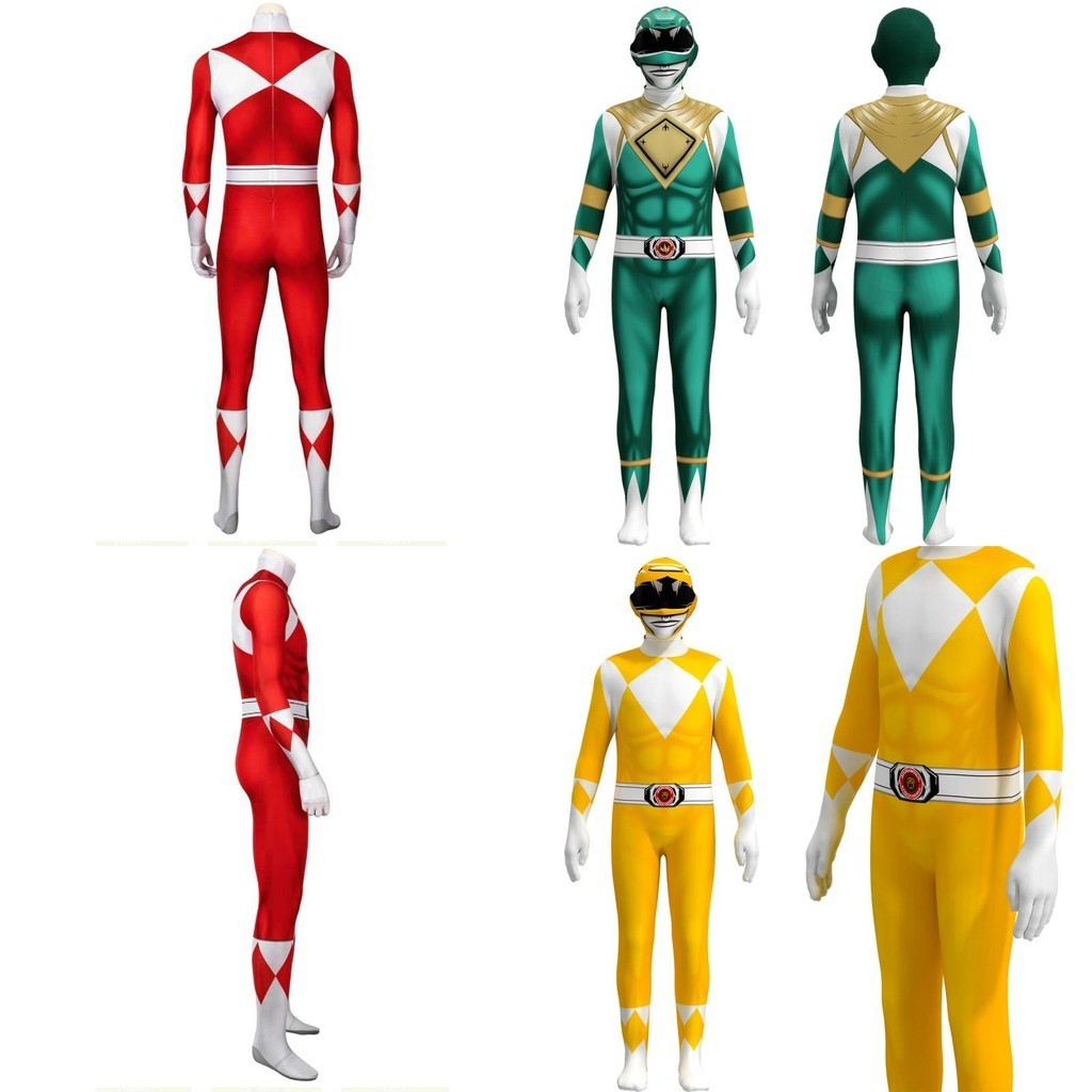 ชุดคอสเพลย์พาวเวอร์เรนเจอร์สำหรับผู้ใหญ่ พร้อมเสื้อแจ๊บสูทฮีโร่สำหรับงานปาร์ตี้