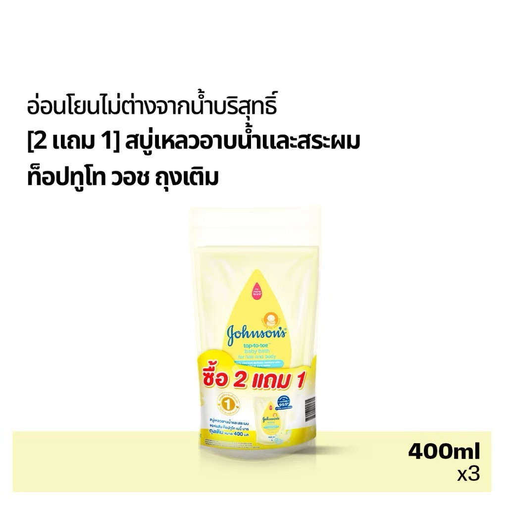 Johnson's Baby Top To Toe Baby Wash and Shampoo400ml Refill(Buy2Get1Free) จอห์นสัน เบบี้ ครีมอาบน้ำและสระผมเด็ก ถุงเติม