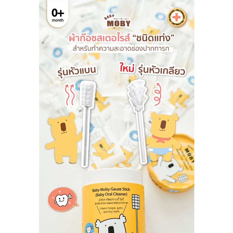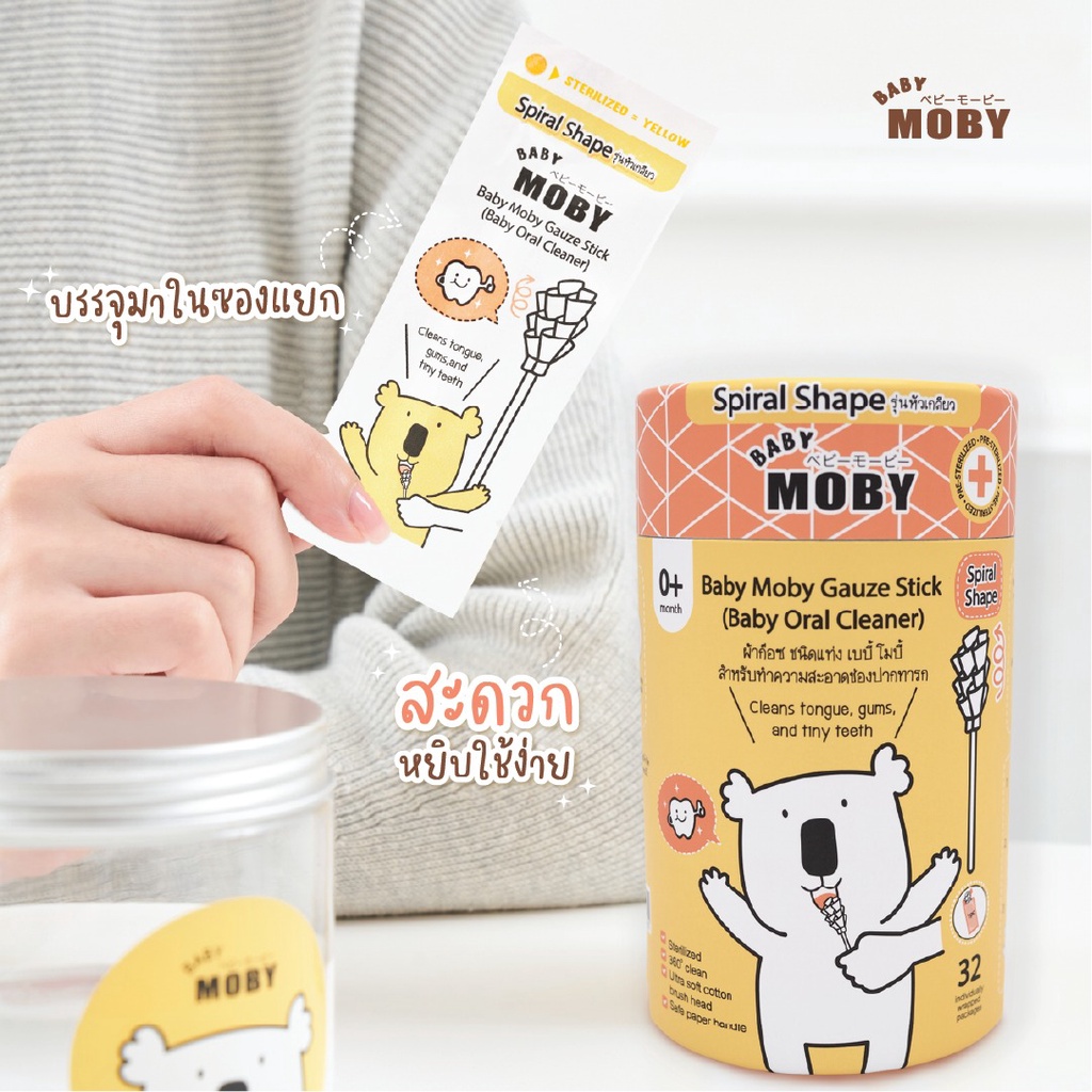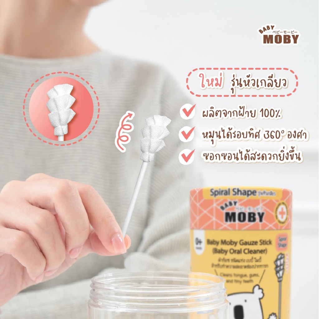 ผ้าก๊อซแท่งแบบหัวเกลียว ผ้าก๊อซทำความสะอาดช่องปากเด็ก ที่เช็ดลิ้นเด็ก เช็ดฟัน 1กระปุก บรรจุ32ชิน
