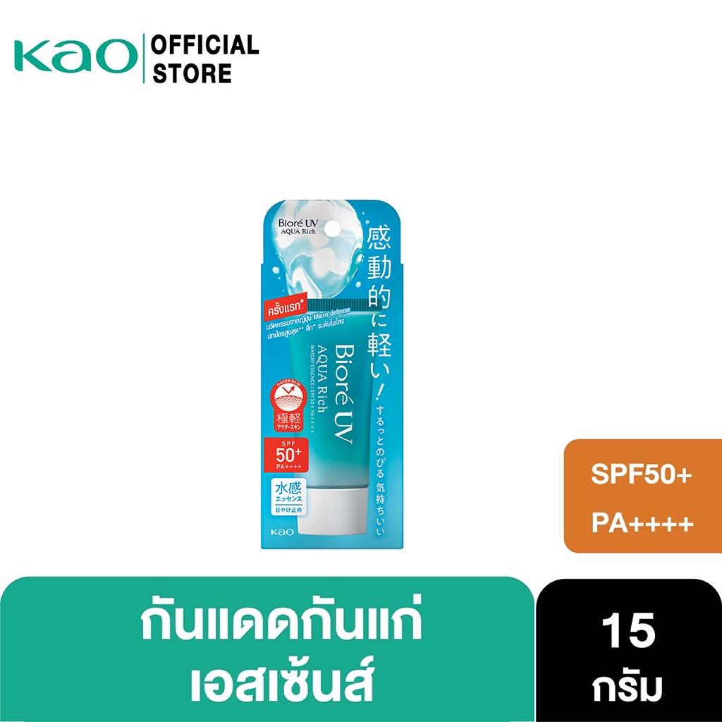 บิโอเร ยูวี อะควา ริช วอเตอร์รี่ เอสเซ้นส์ กันแดด15 ก. Biore UV Aqua Rich Watery Essence SPF50+ PA++++ 15g (ครีมกันแดด)
