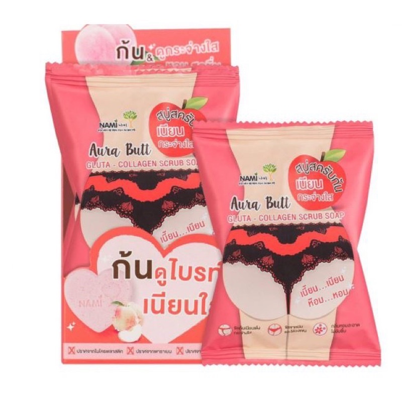 ส่งฟรี/มีไลฟ์ สบู่สครับก้น (สีชมพู) นามิ nami ออร่า บัทท์ กลูต้า-คอลลาเจน สครับ โซป