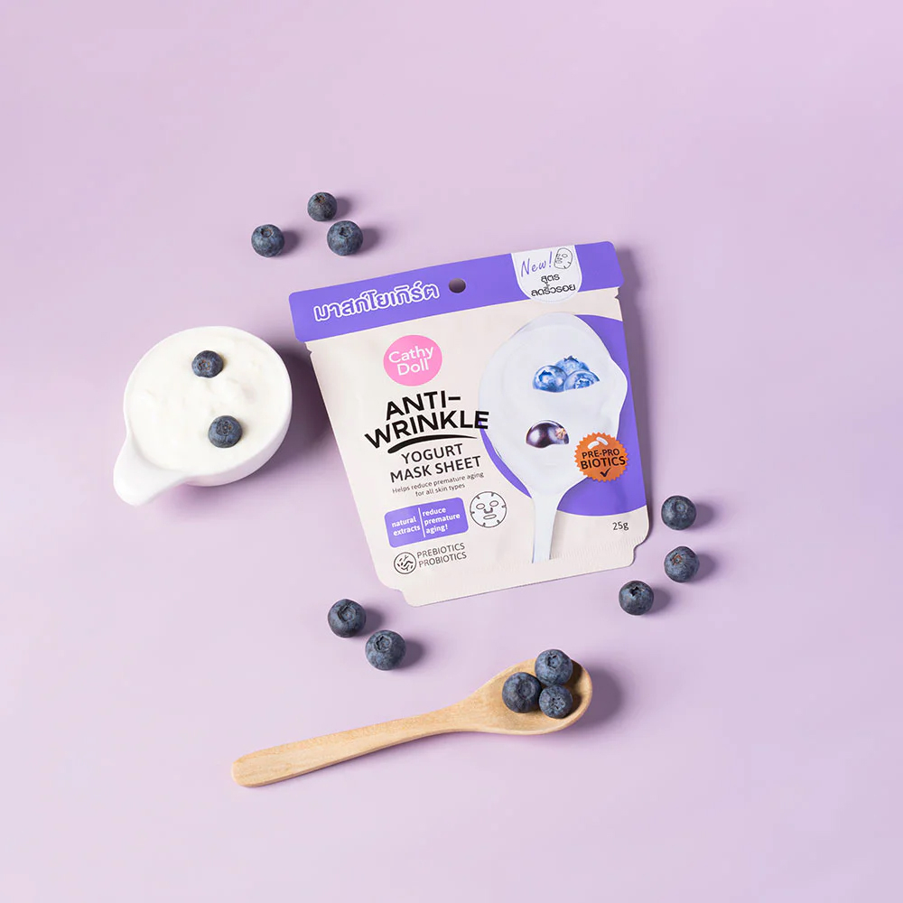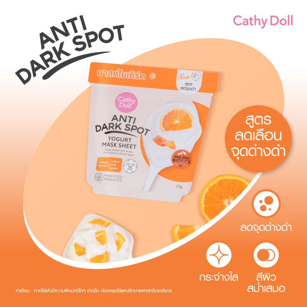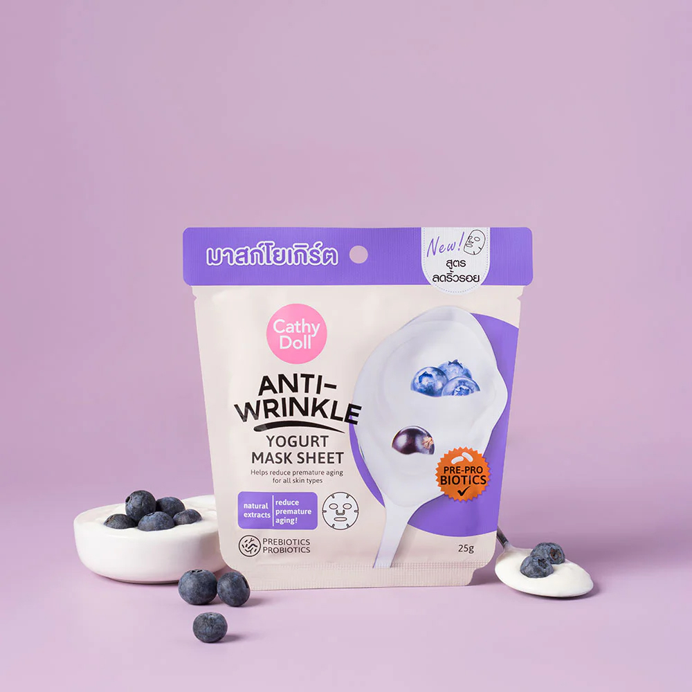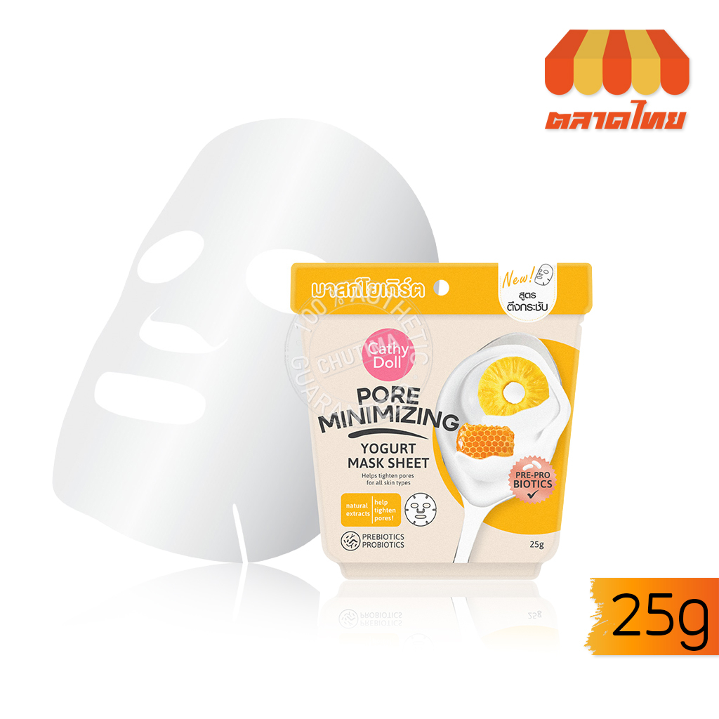 แผ่นมาส์ก เคที่ดอลล์ มาสก์โยเกิร์ต 4 สูตร ลดริ้วรอย จุดด่างดำ ผิวใส ตึงกระชับ Cathy Doll Yogurt Mask Sheet 25g.