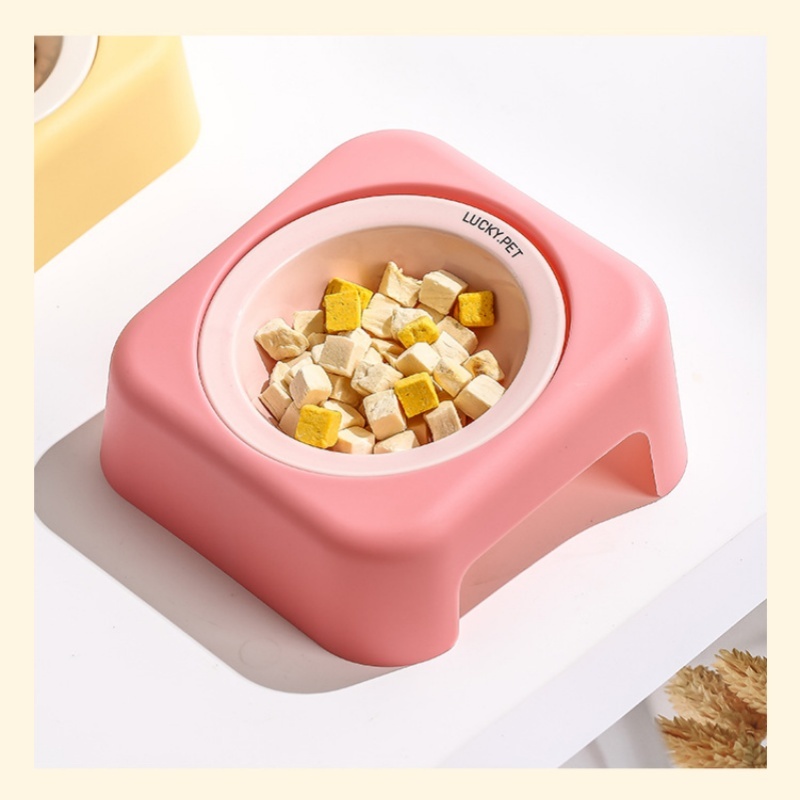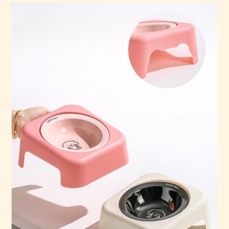 ชามอาหารแมว (เซรามิก+พลาสติก) ชามอาหาร สุนัข หมา แมว เอียง15องศา ชามรองคอ CW40