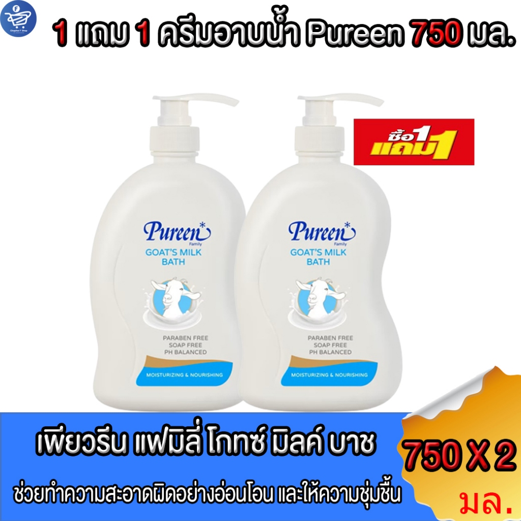 (ซื้อ 1 แถม 1) เพียวรีน แฟมิลี่ โกทซ์ มิลค์ บาช Pureen goat milk bath ครีมอาบน้ำขวดปั๊ม 750มล.