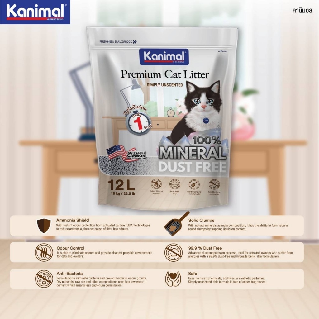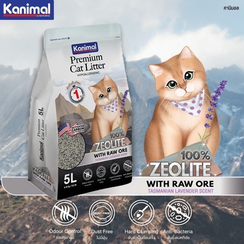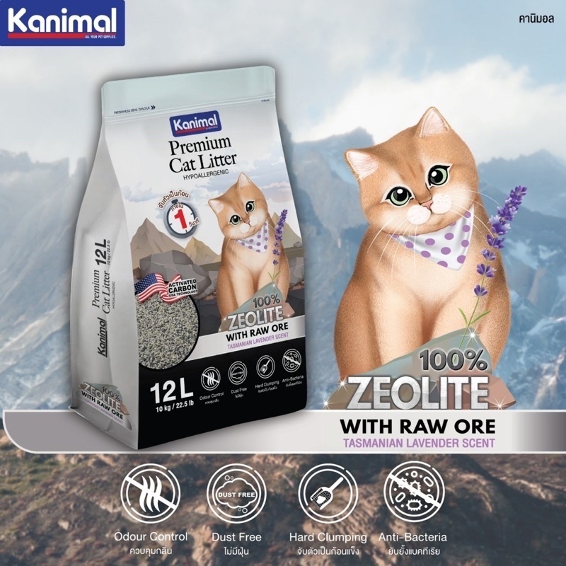 Kanimal คานิมอล Zeolite Premium ทรายแมว ภูเขาไฟทรายแมวพรีเมี่ยม จับตัวเป็นก้อนภายใน 1 วินาทีขนาด 12L จำกัดการสั่ง 2 ถุง