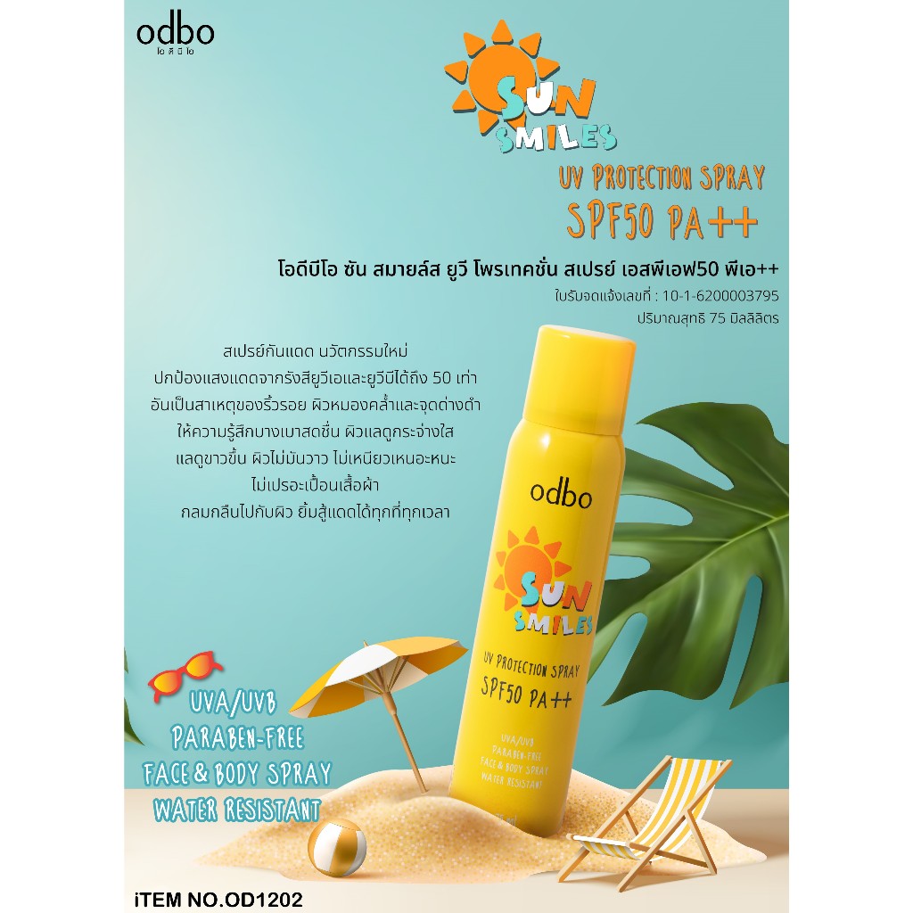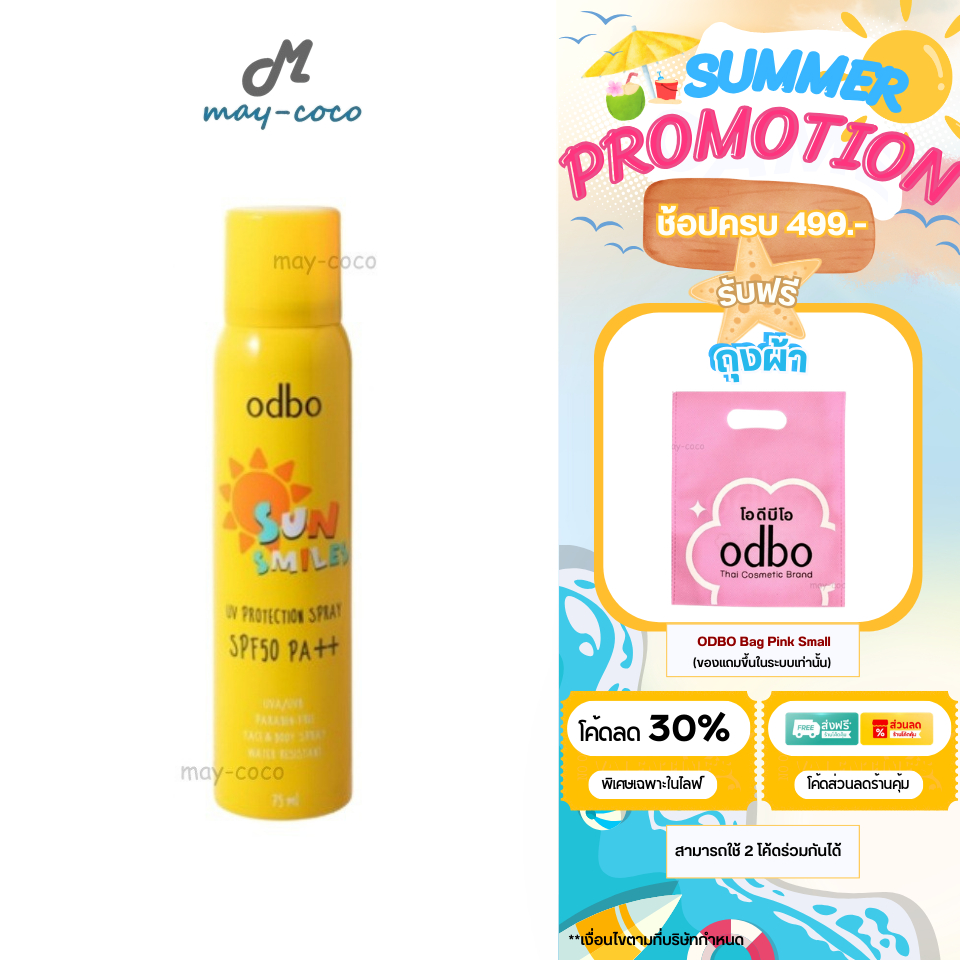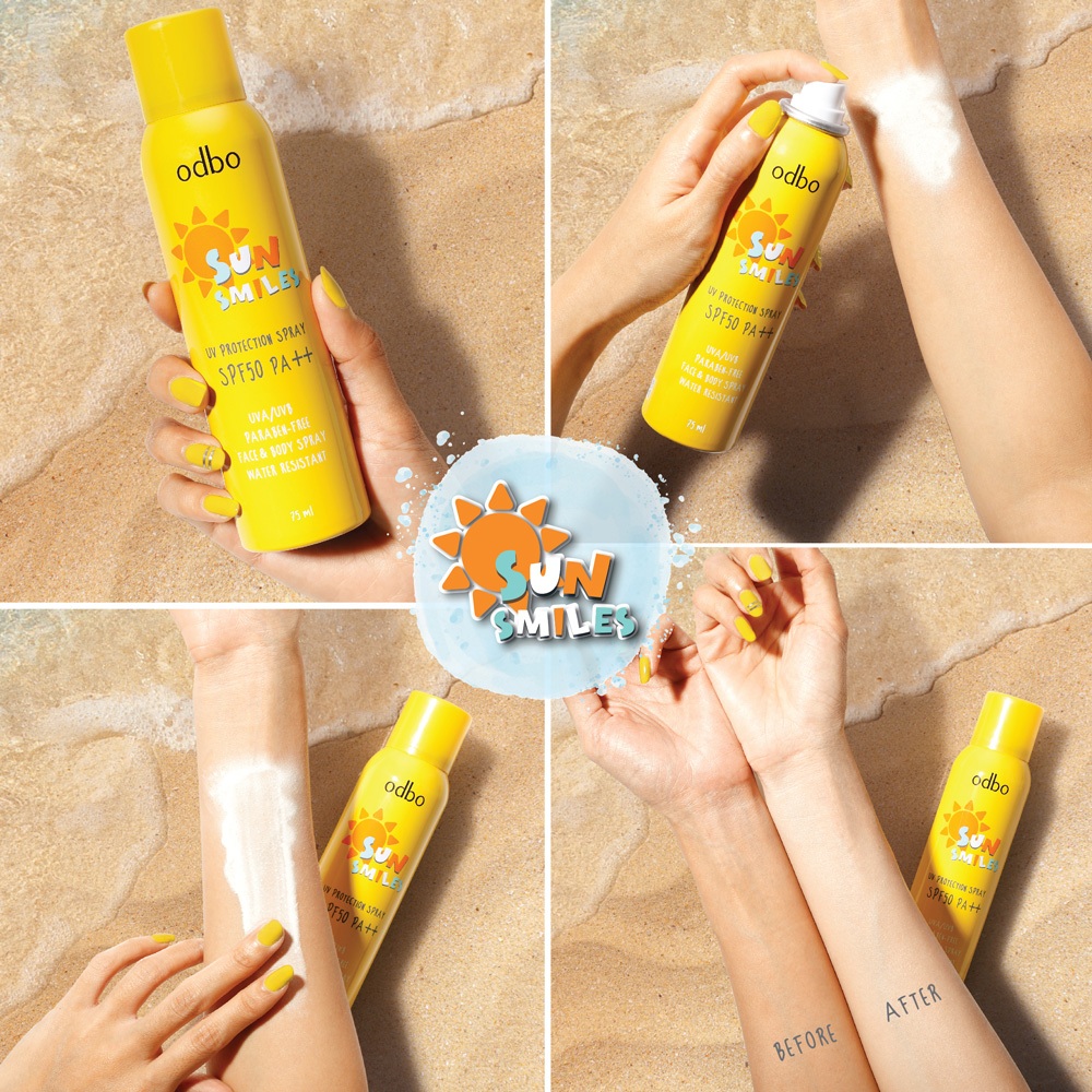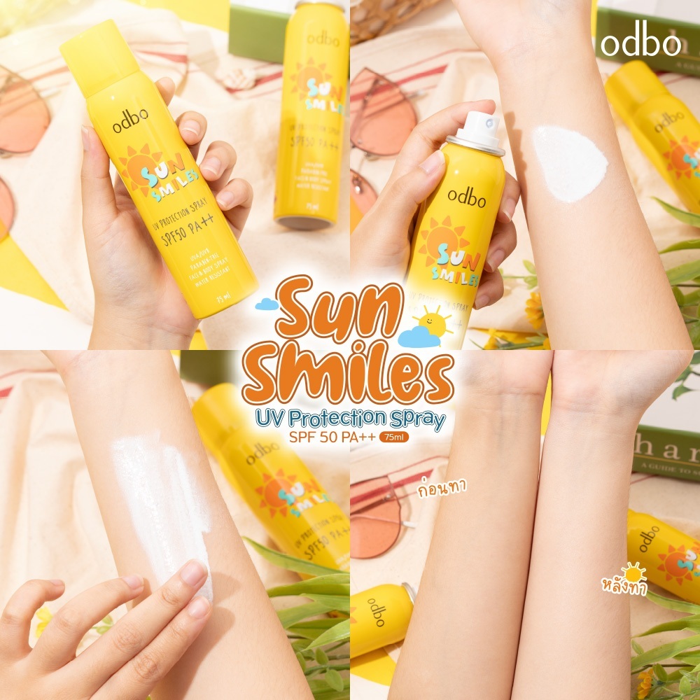 ถูก/แท้/มีไลฟ์ สเปรย์กันแดด ODBO Sun Smiles UV Protection Spray SPF50 PA++ สเปรย์ ฉีดหน้า บางเบา สดชื่น กระจ่างใส