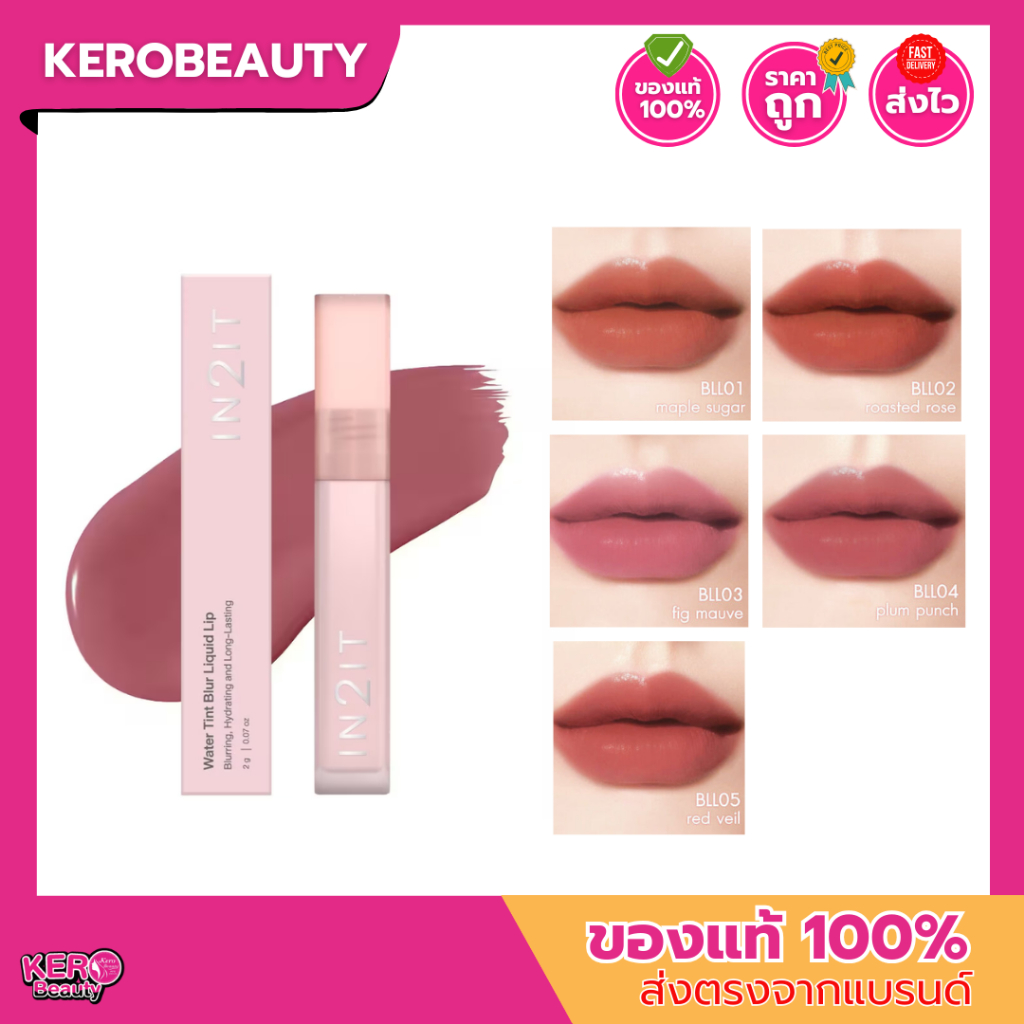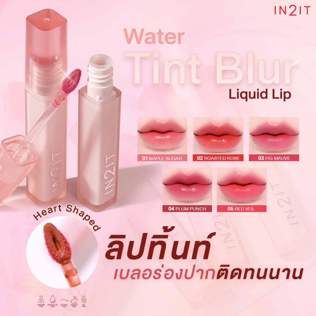 IN2IT Water Tint Blur Liquid Lip 2g. ลิปทิ้นท์เนื้อเจลกึ่งน้ำที่เปลี่ยนเป็นเนื้อกำมะหยี่ เบลอร่องปาก เกลี่ยง่าย บางเบา