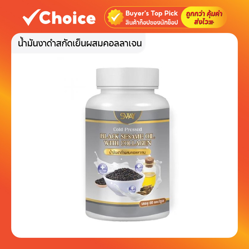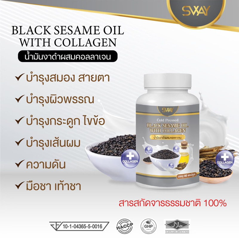 น้ำมันงาดำสกัดเย็นผสมคอลลาเจน แบรนด์ SWAY ขนาด 60 เม็ด อาหารเสริมจากงาดำ