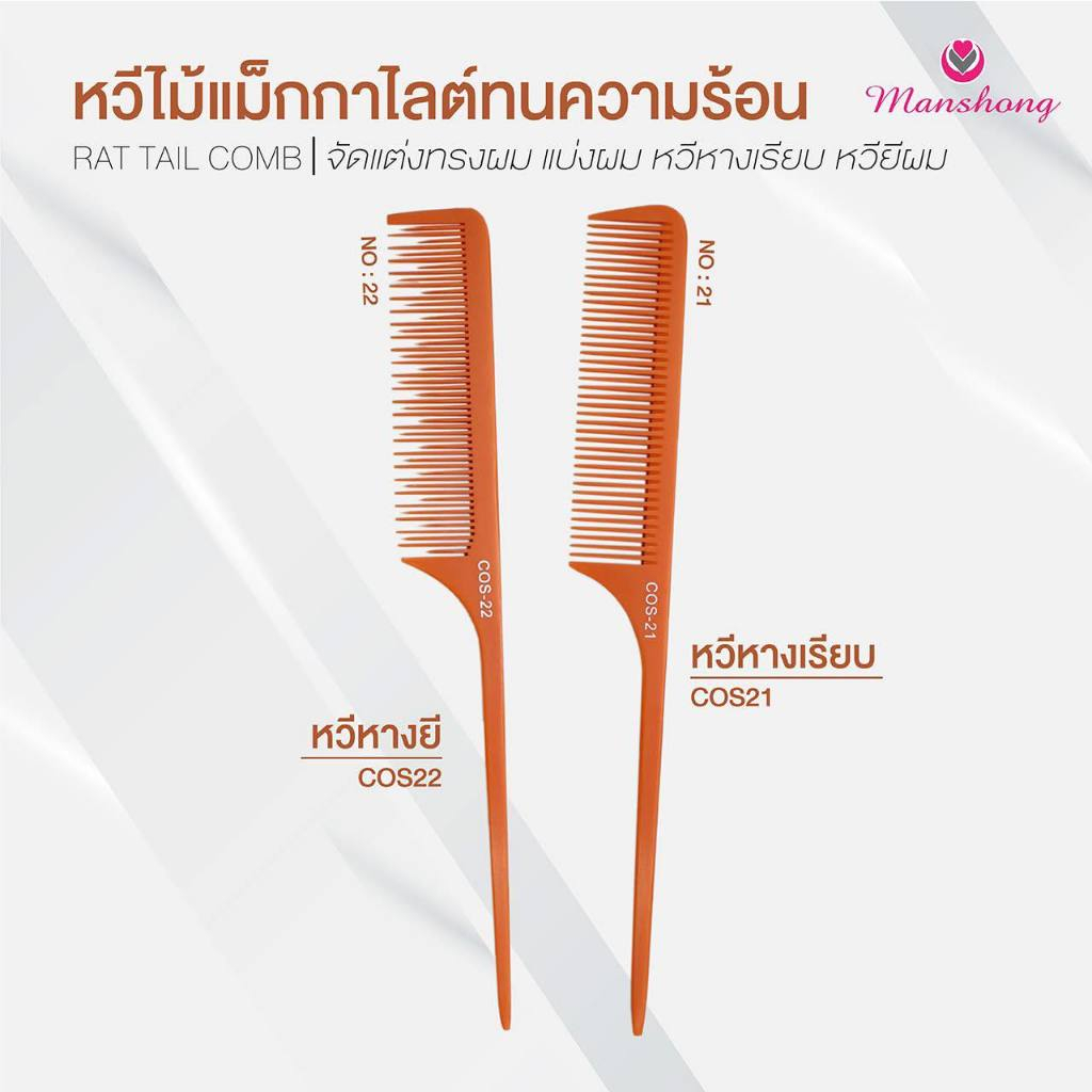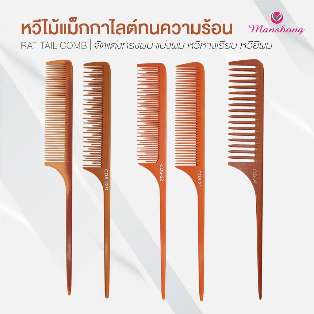 หวีช่าง หวีไม้แม็กกาไลต์ ทนความร้อน หวีหาง จัดแต่งทรงผม By Manshong