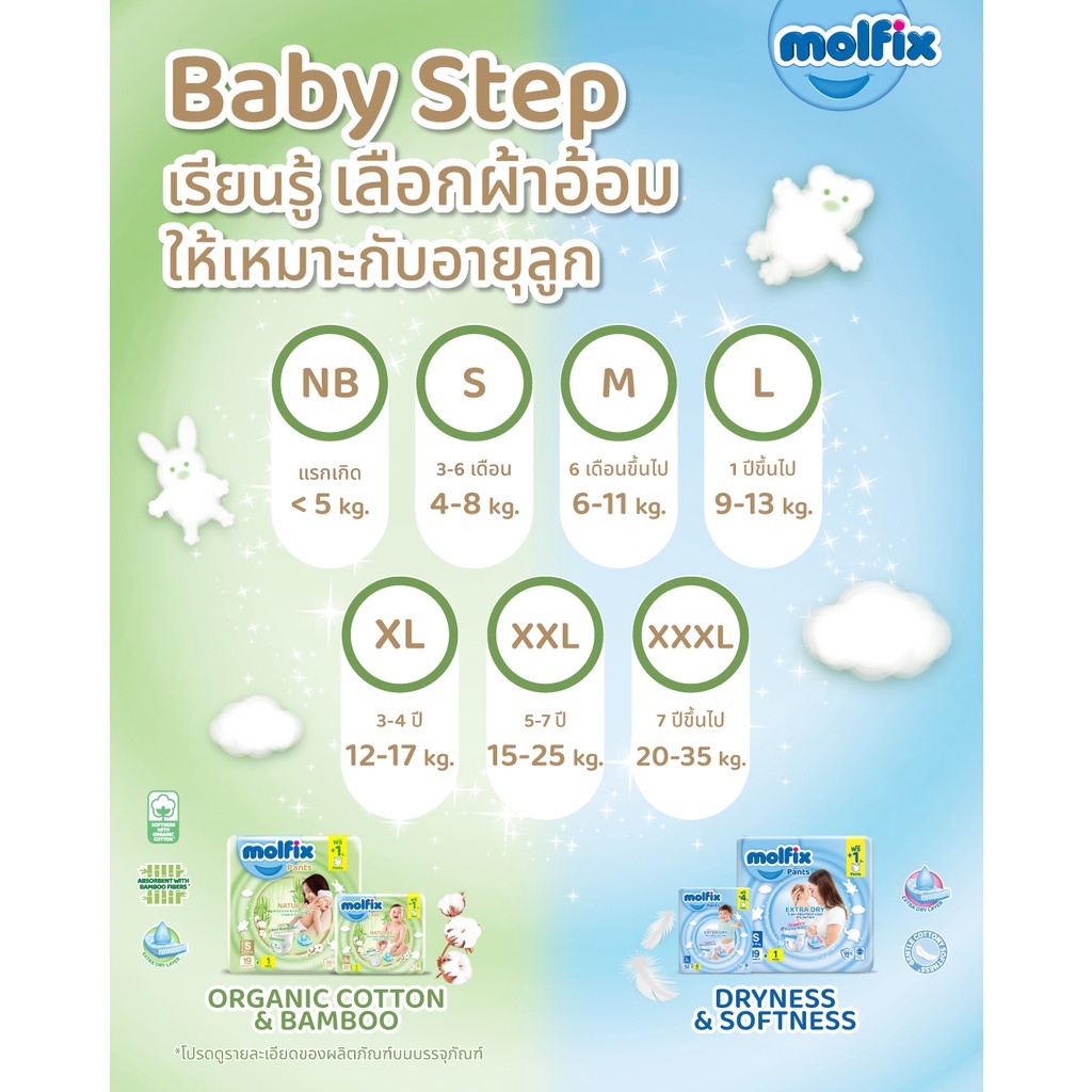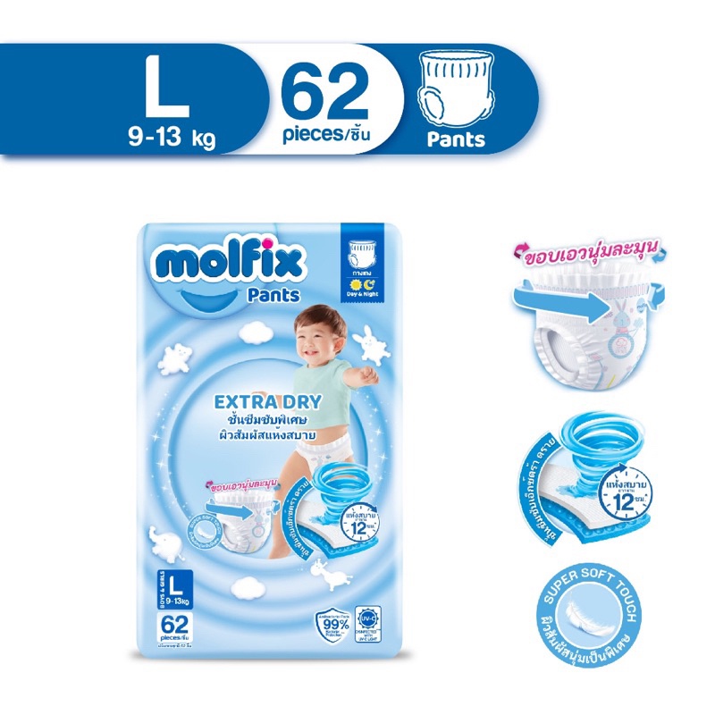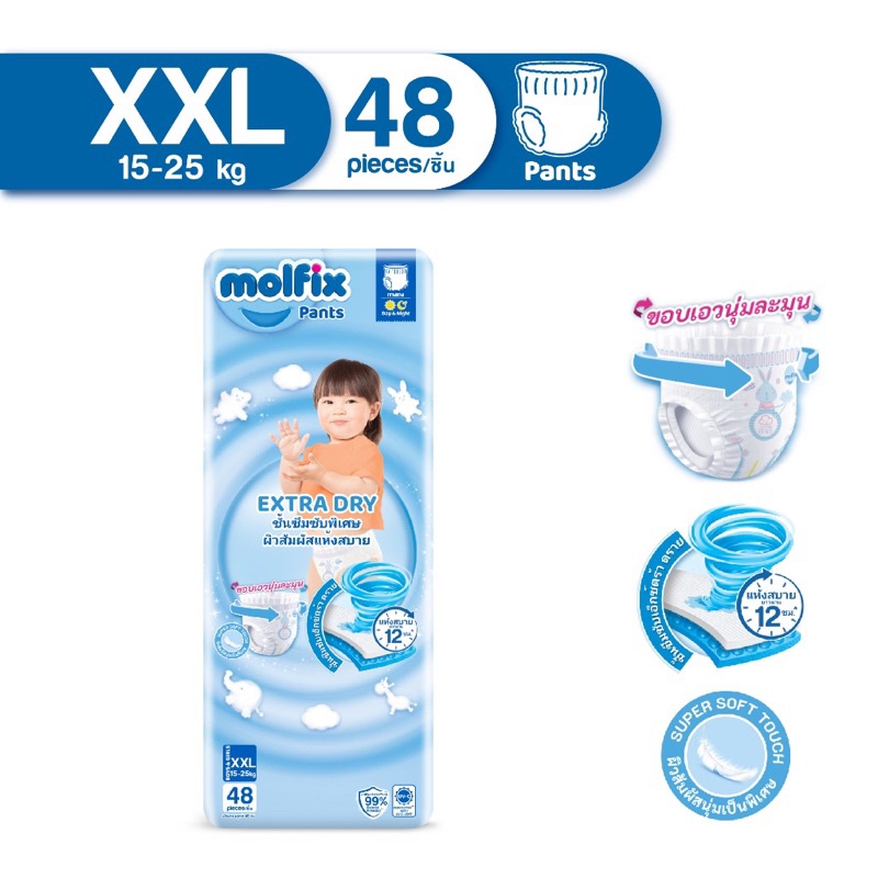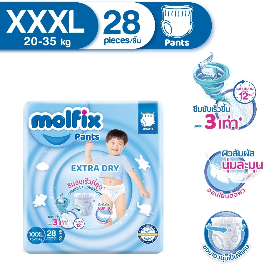 [ห่อใหญ่จัมโบ้] Molfix Extra Dry ผ้าอ้อมเด็กโมฟิก ผ้าอ้อมเด็กสำเร็จรูป ชนิดกางเกง รุ่นเอ็กซ์ตร้า ดราย แพมเพส ไซส์ M-XXXL