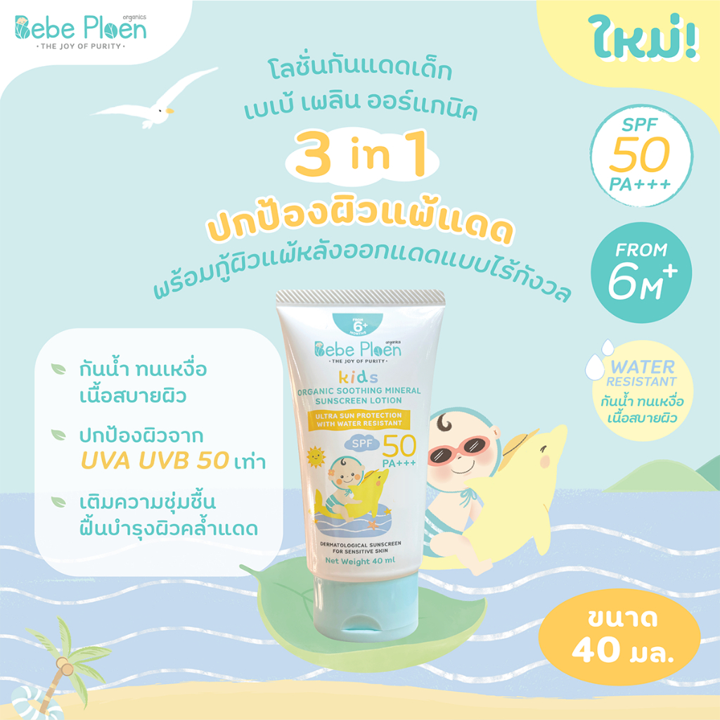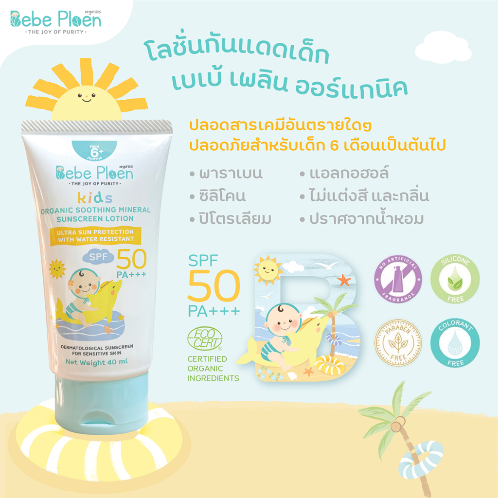 โลชั่นกันแดดเด็กออร์แกนิค เบเบ้ เพลิน ออร์แกนิค (Bebe Ploen Soothing Mineral Sunscreen)