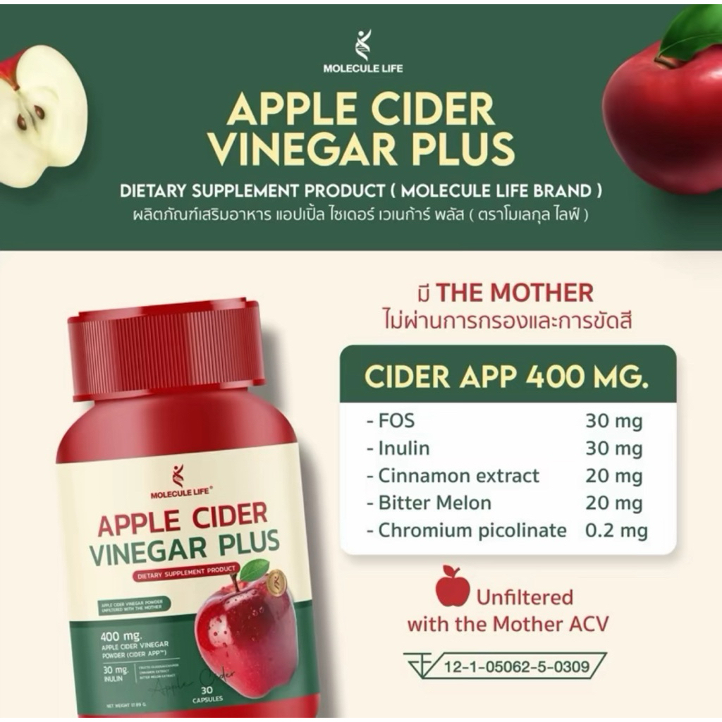 (🍎พร้อมส่ง สูตรใหม่) แท้💯 📍1แถม1📍 Molecule apple cider vinegar โมเลกุลแอปเปิ้ลไซเดอร์ ช่วยย่อยอาหาร เร่งเผาผลาญ