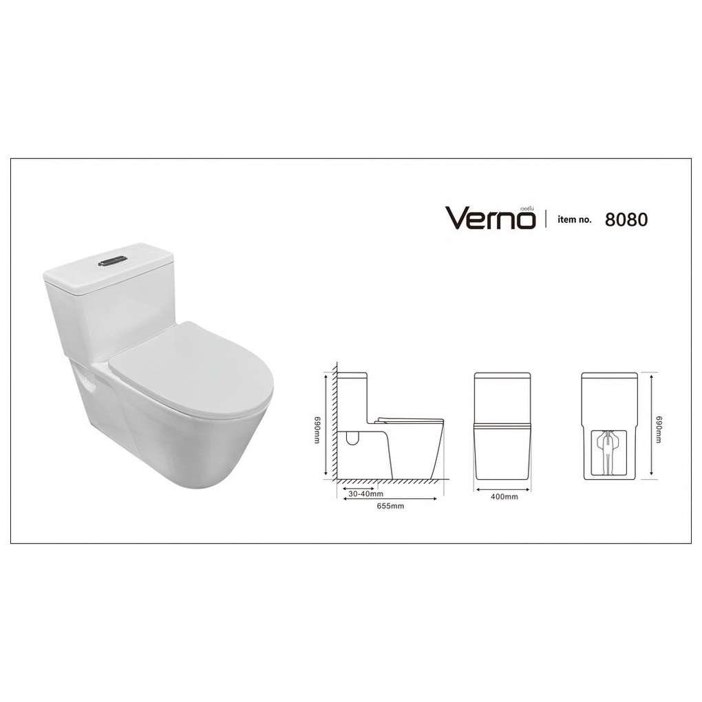 GlobalHouse Verno สุขภัณฑ์ชิ้นเดียวแบบกดบน 2 ระบบ รุ่น เวนิส VN-8080 สินค้าของแท้คุณภาพดี