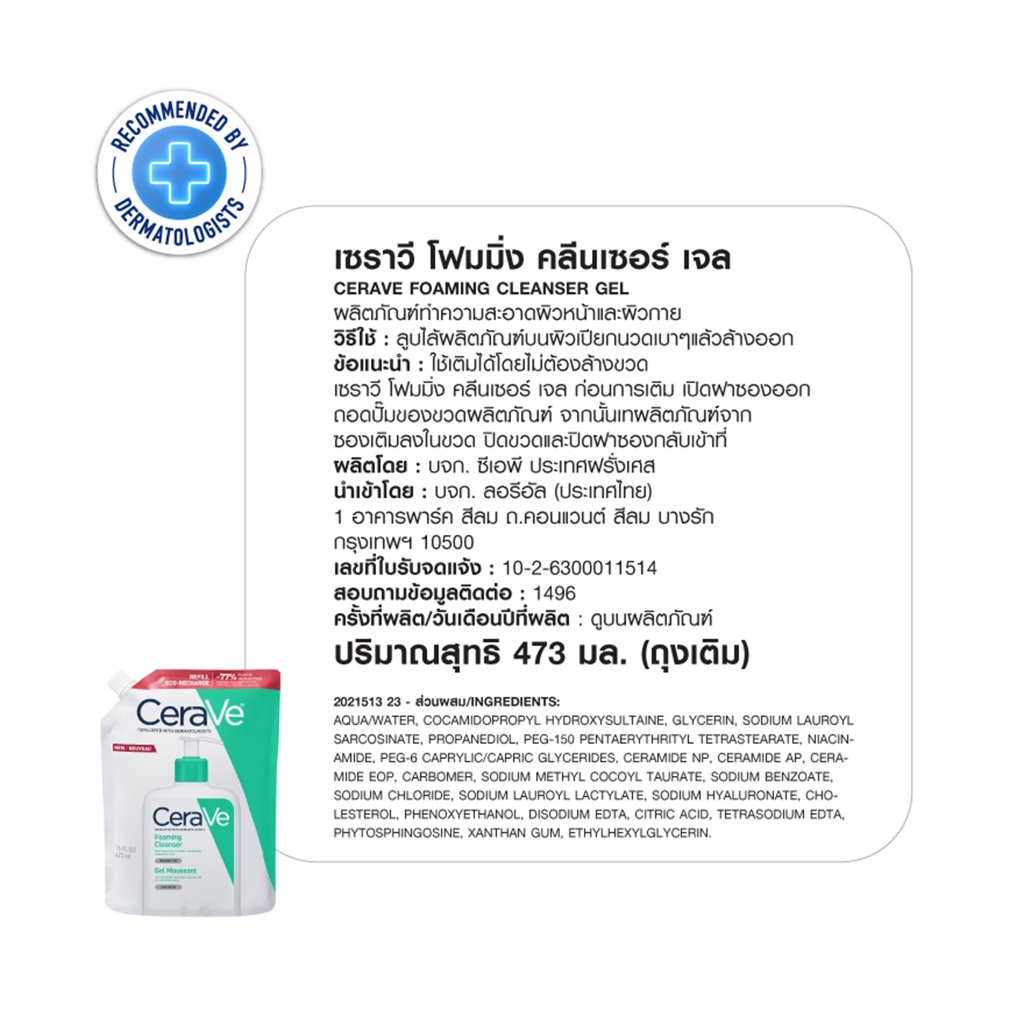 CERAVE - Foaming Cleanser 473 Ml + Refill 473 Ml เซราวี โฟมมิ่ง คลีนเซอร์ + รีฟิล