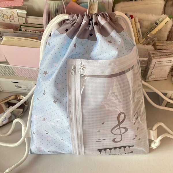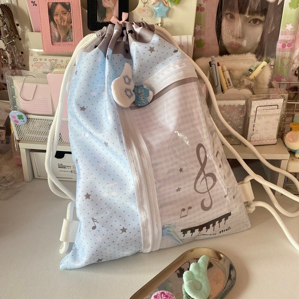 Steve Blue-gray Star Musical Note Drawstring Backpack Doll Display Backpack