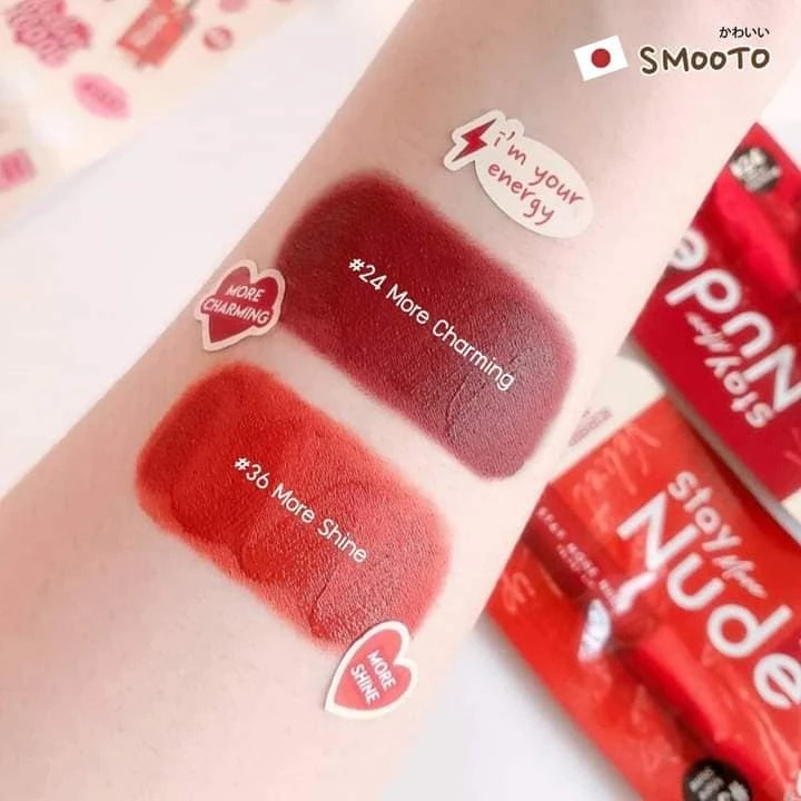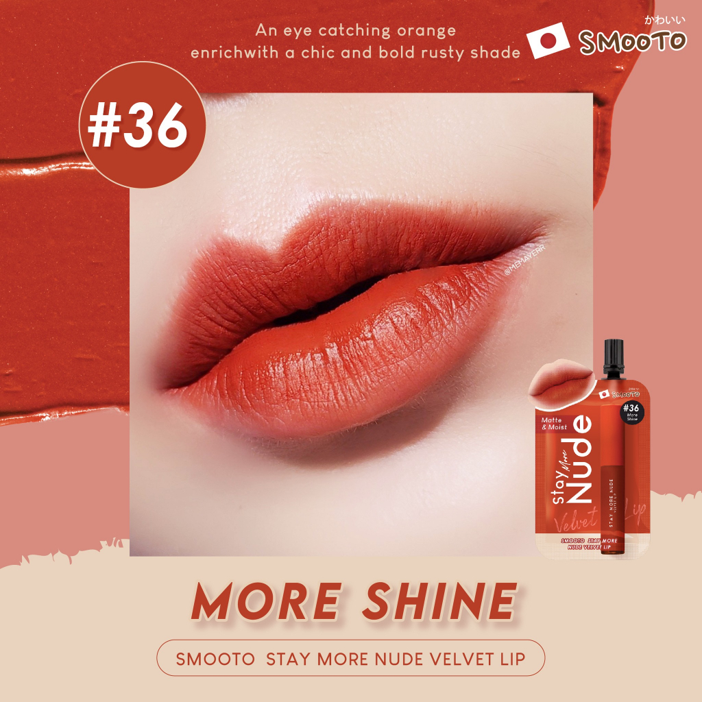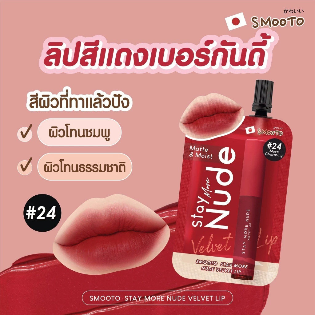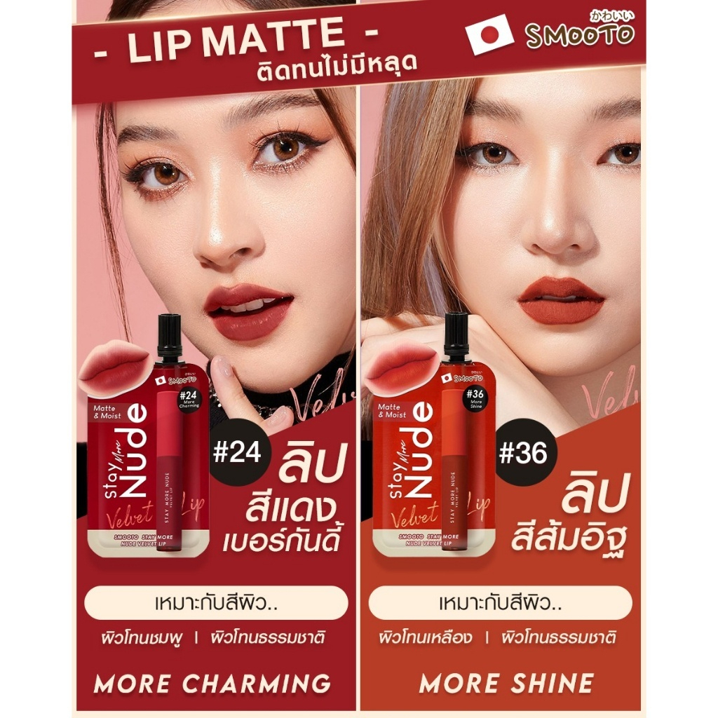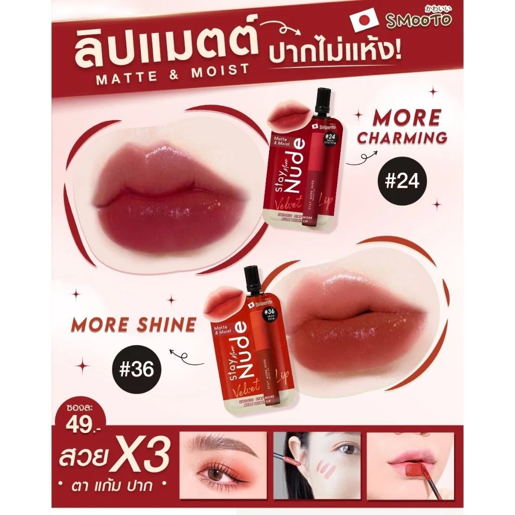 (ยกกล่อง x 6ซอง) สมูทโตะ สเตย์ มอร์ นู้ด เวลเวท ลิป Smooto Stay More Nude Velvet Lip