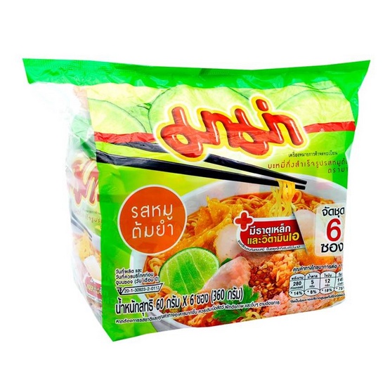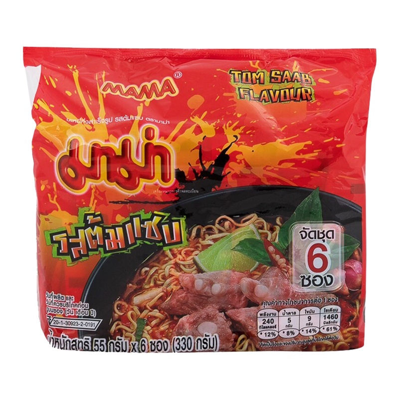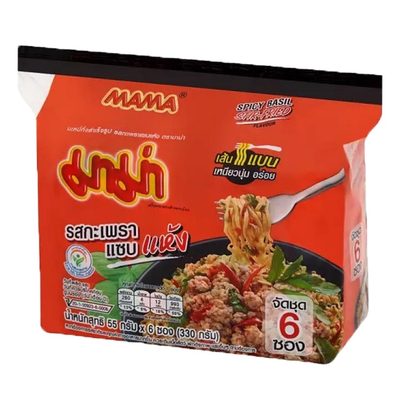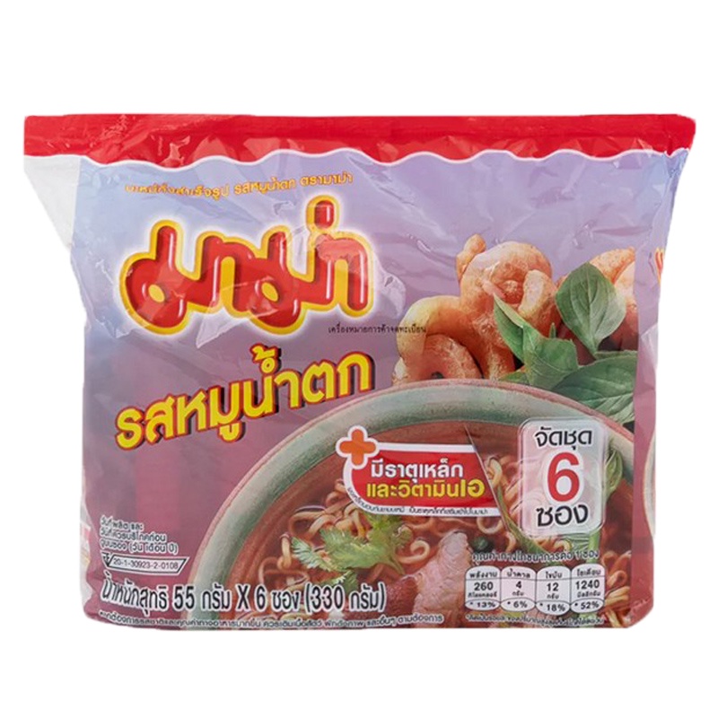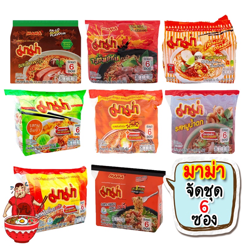 MAMA มาม่า บะหมี่และก๋วยเตี๋ยวกึ่งสำเร็จรูป **จัดชุด6ซอง** ขนาด 55-60 กรัม (แพ็คx6)
