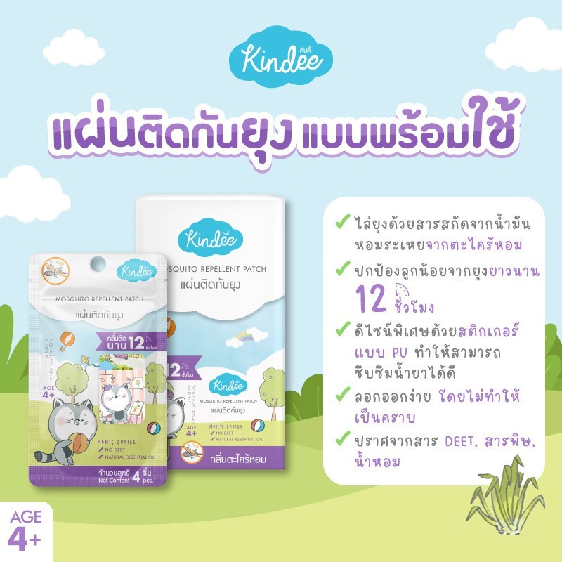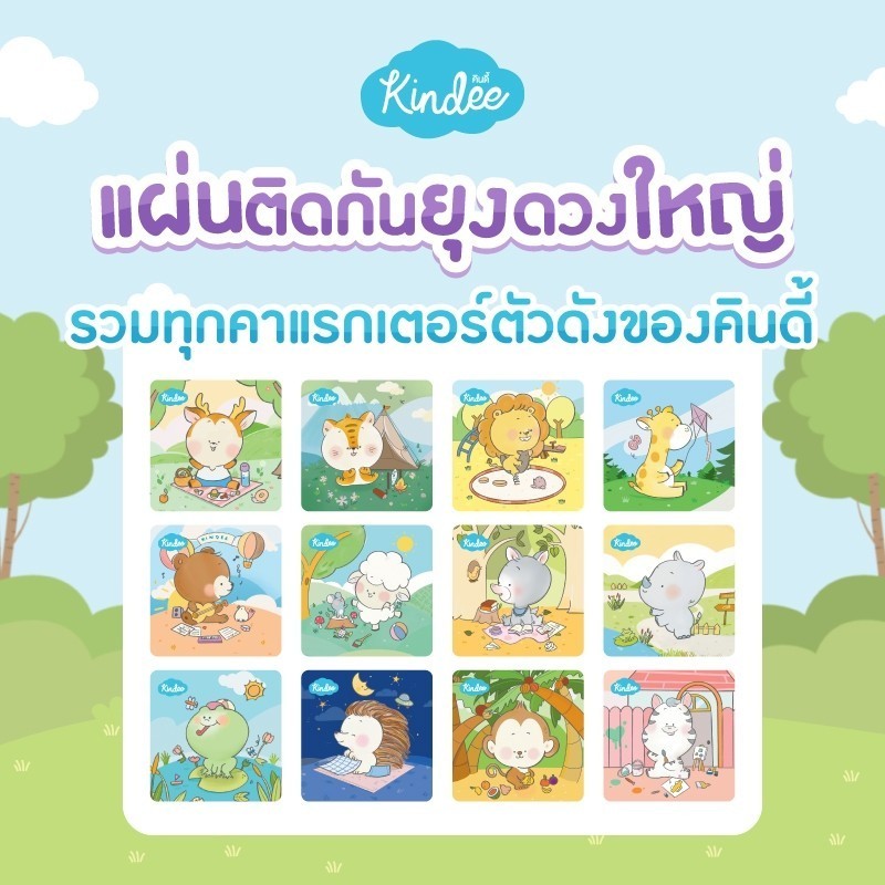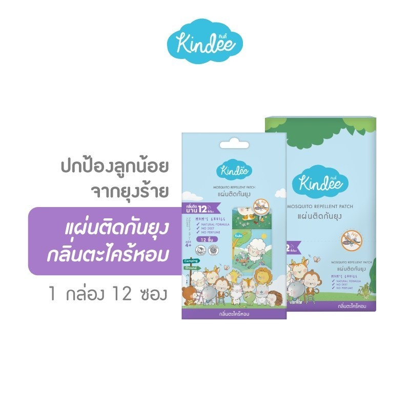 Kindee คินดี้ ผลิตภัณฑ์กันยุง แผ่นติดกันยุงสำหรับลูกน้อย สำหรับเด็กแรกเกิดขึ้นไป (1 ซอง/12 ดวง) ลาย kindee