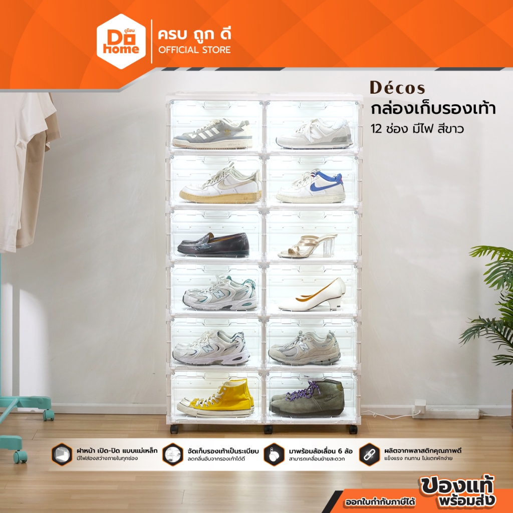 DECOS กล่องเก็บรองเท้า 12 ช่อง มีไฟ สีขาว |ZWF|