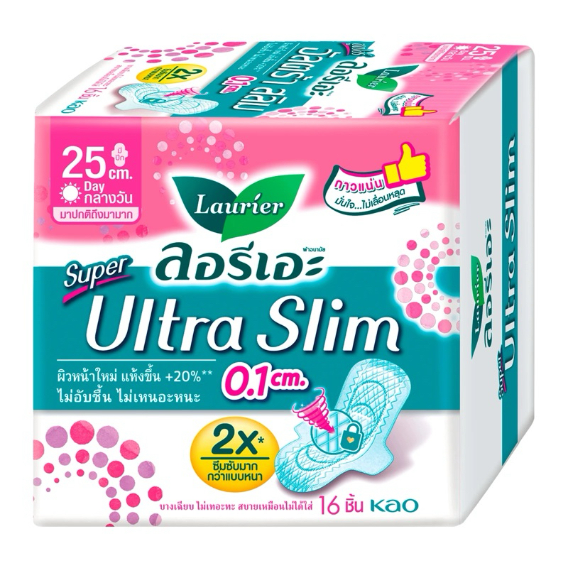 ลอรีเอะ Super Ultra Slim ซูเปอร์ อัลตร้า สลิม ผ้าอนามัย แบบมีปีก 22.5/25/30 ซม.