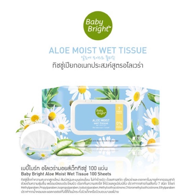 ส่งฟรี/มีไลฟ์ ลด50% ‼️เบบี้ไบร์ท อโลเวร่า มอยส์ เว็ท ทิชชู่เปียก 100แผ่น