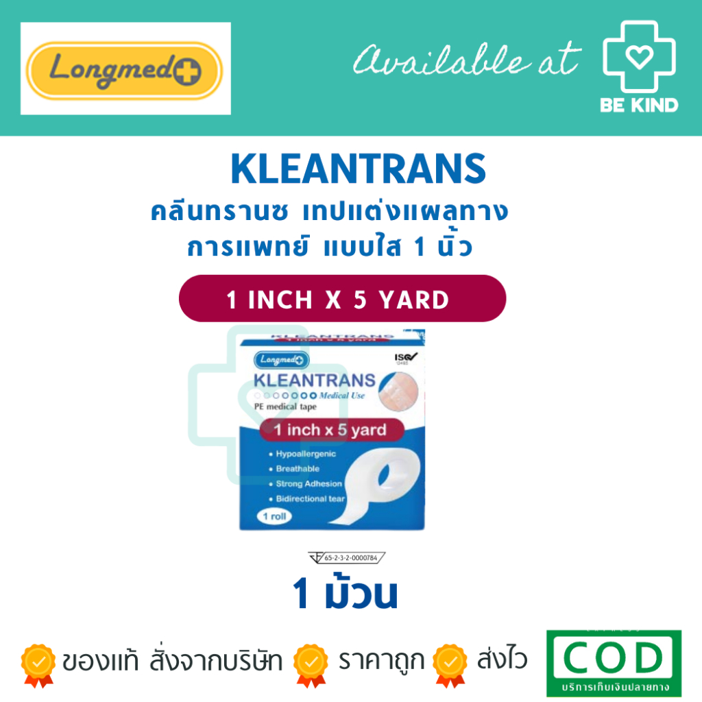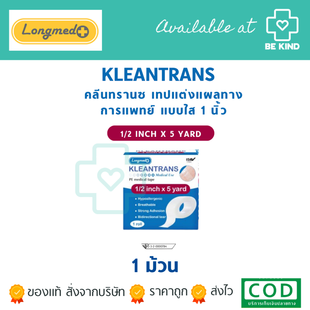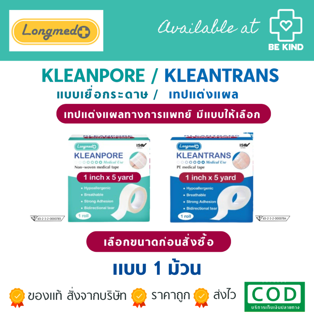 [ขายป็นม้วน] Longmed เทปแต่งแผลทางการแพทย์ [ขายป็นม้วน] มีให้เลือก Kleantrans / Kleanpore