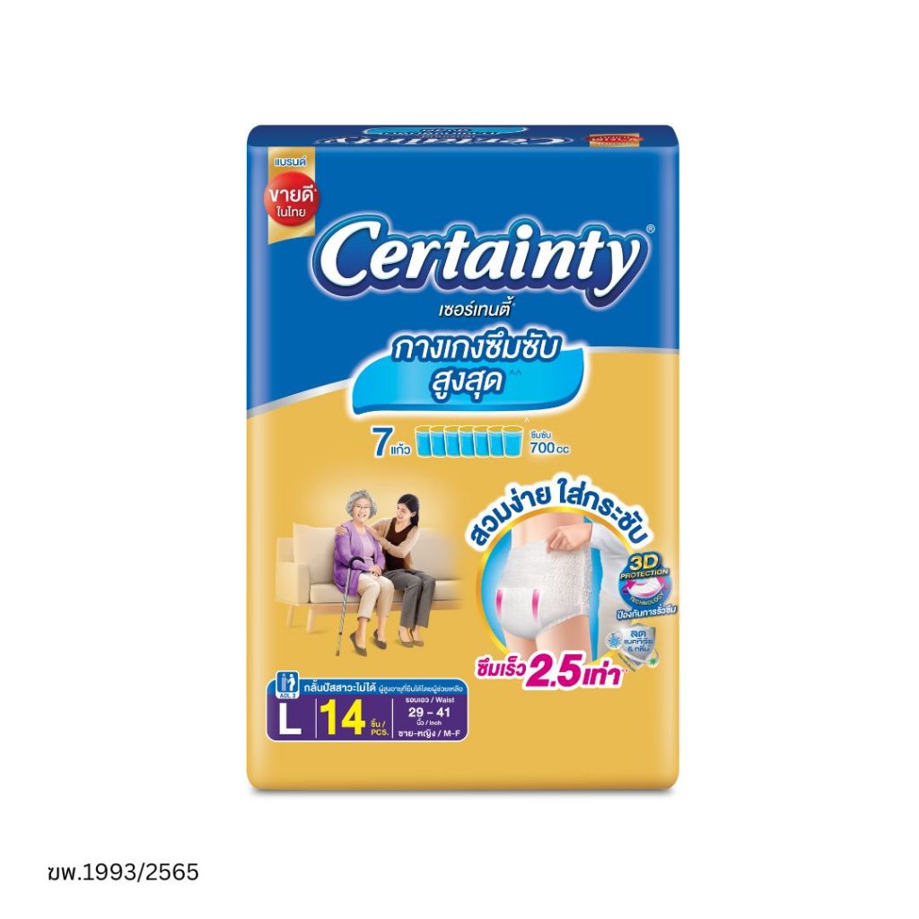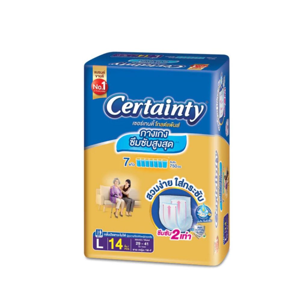 Certainty Gold Pants เซอร์เทนตี้โกล์ดแพ้นส์ กางเกงผ้าอ้อมผู้ใหญ่ ไซส์ L บรรจุ 14 ชิ้น