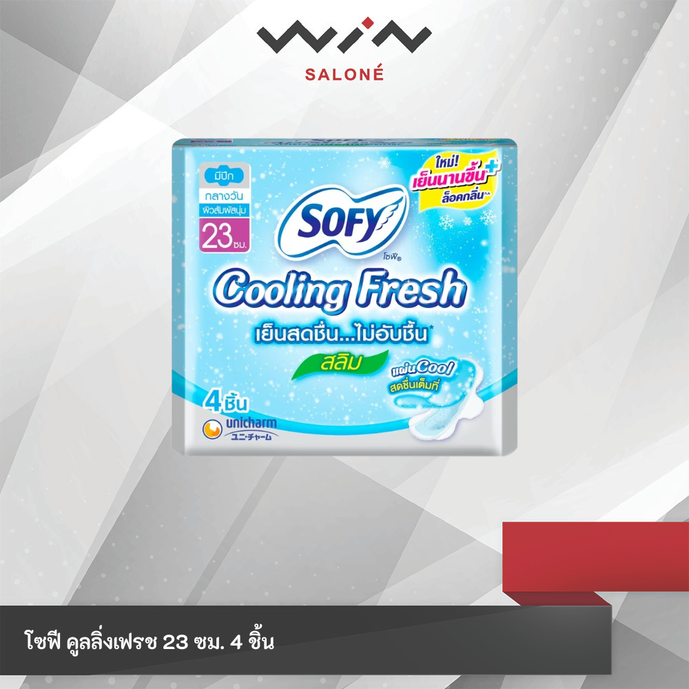 Sofy โซฟีคูลลิ่งเฟรช สลิมมีปีก 23ซม. 4 ชิ้น ผ้าอนามัยสูตรเย็น ติดราคา 18 บาท