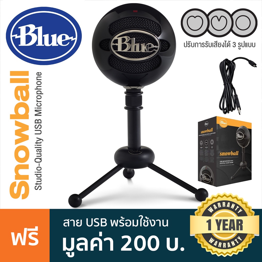 Blue Microphones® Snowball Studio-Quality USB Microphone ไมโครโฟน แบบ USB พร้อมขาต้ัง สำหรับ Live , เคสเกม , ประชุม