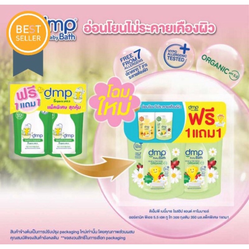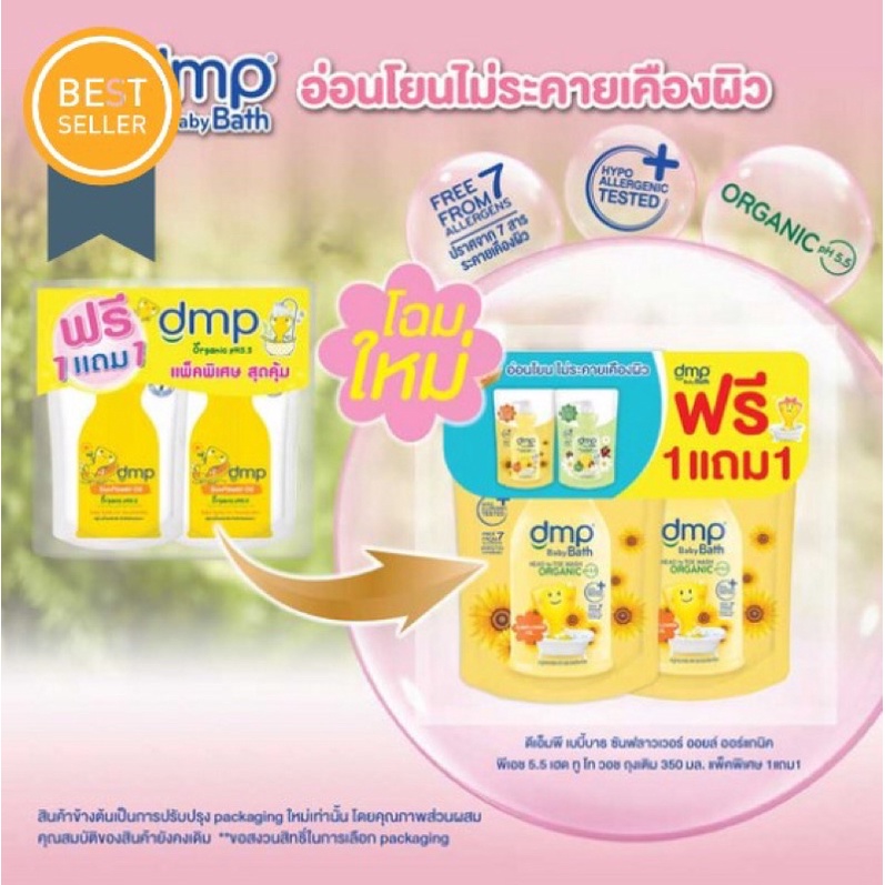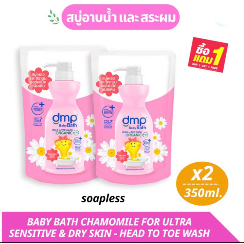 1แถม1 ชนิดเติม dmp สบู่เหลว ซันฟลาวเวอออยล์ เบบี้บาธ สีเหลือง/สีเขียว 350 มล. B16XX23