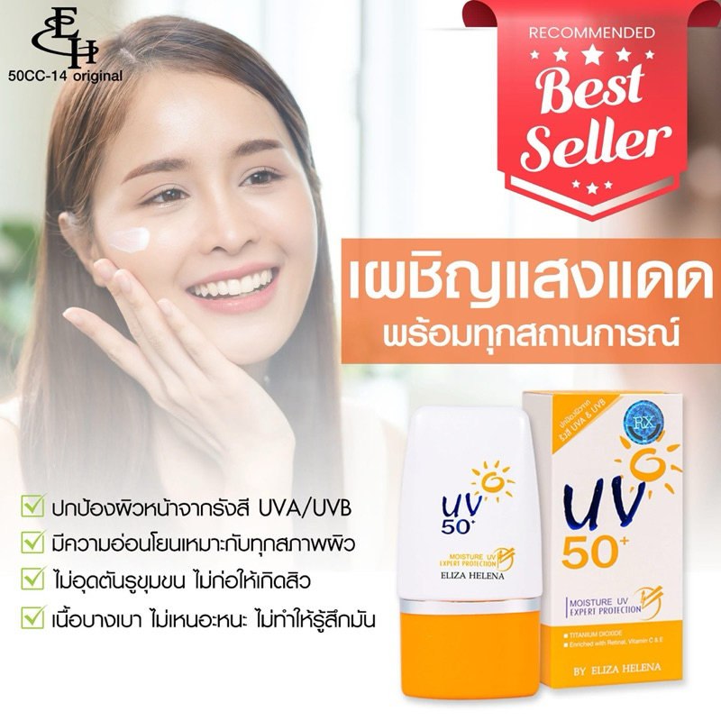 ELIZA HELENA MOISTURE UV EXPERT PROTECTION 50+ ครีมกันแดดสำหรับผิวหน้าเนื้อบางเบา