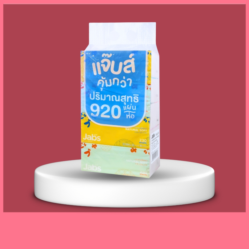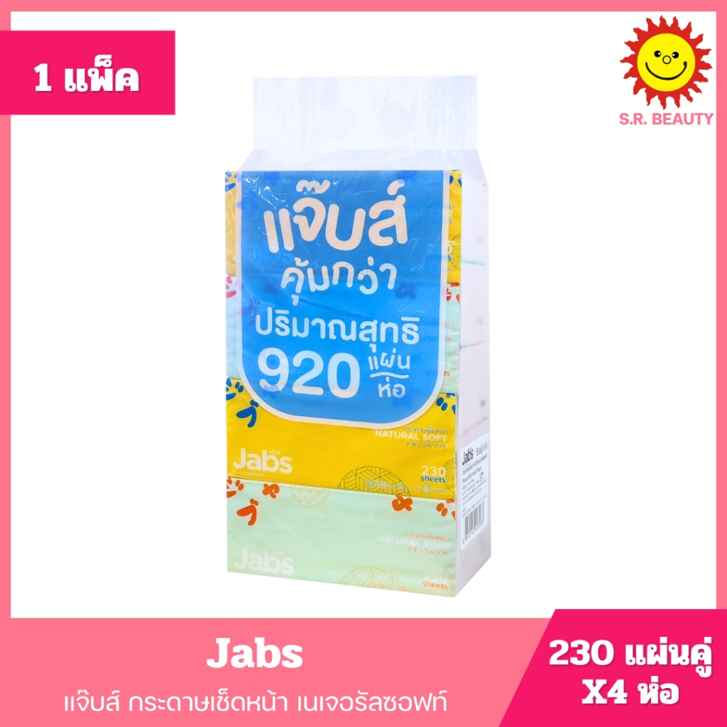 [ 1 แพ็ค ] แจ๊บส์ กระดาษเช็ดหน้า เนเจอรัลซอฟท์ 230แผ่น x4ห่อ