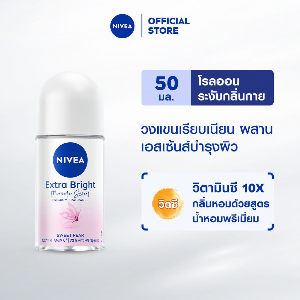 นีเวีย เอ็กซ์ตร้า ไบรท์ มิราเคิล สวีท พรีเมียม ฟราแกรนซ์ สวีท แพร์ โรลออน 50 มล. NIVEA โรลออนผู้หญิง deodorant