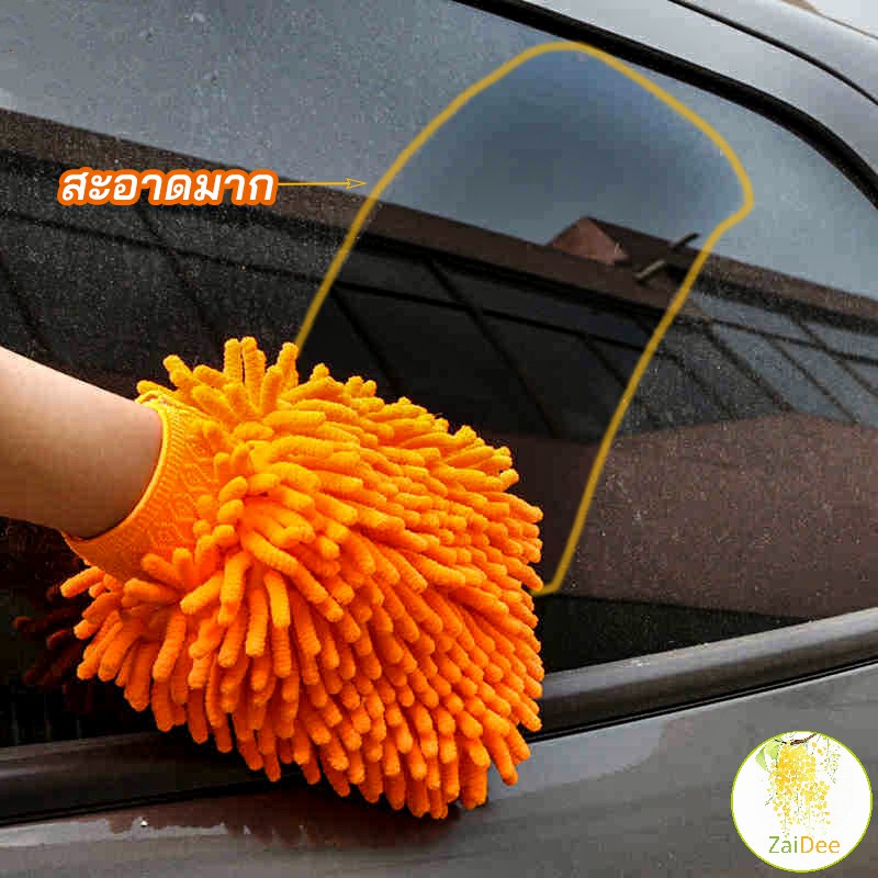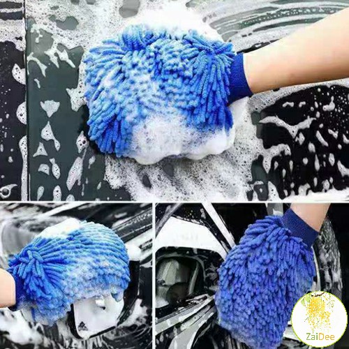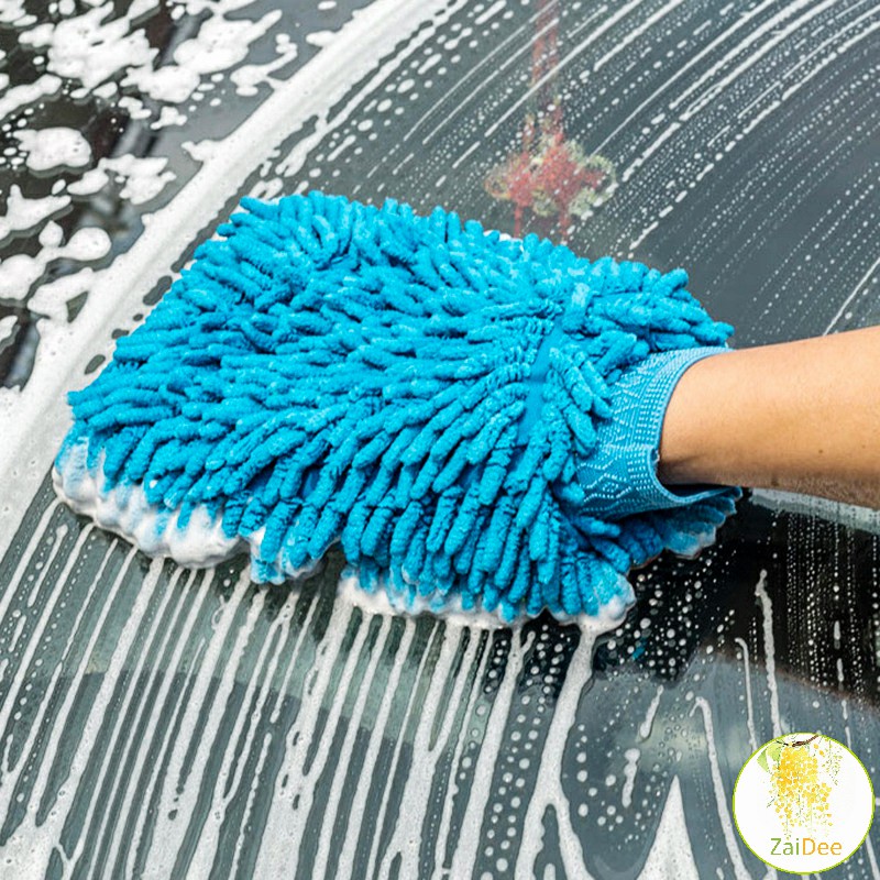 ถุงมือล้างรถไมโครไฟเบอร์ตัวหนอน เช็ดรถ ถุงมือล้างจาน ถุงมือล้างรถเชนิลล์ car wash gloves