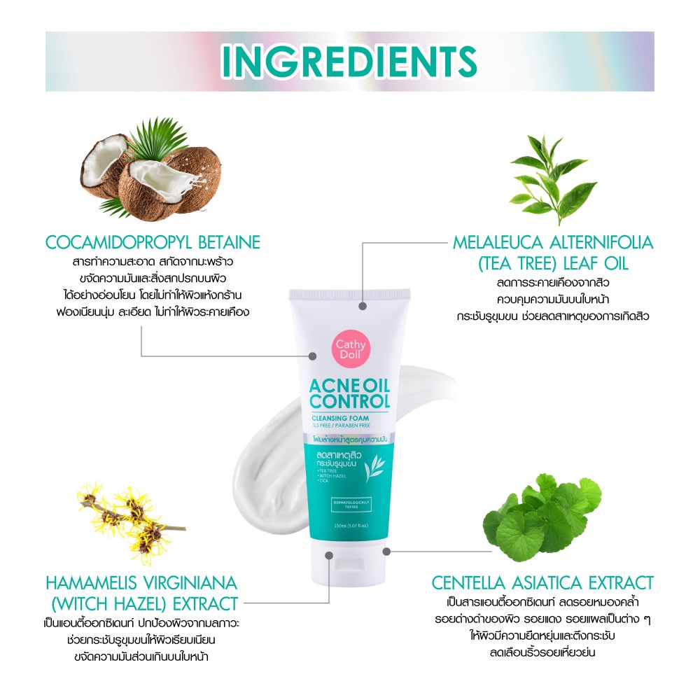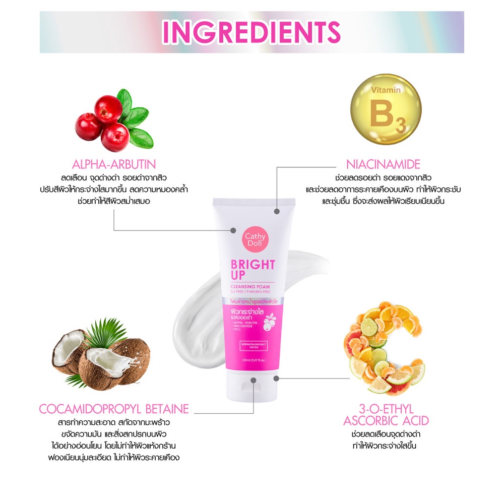 เคที่ดอลล์ โฟมล้างหน้า คุมมัน เนื้อโฟมหนานุ่ม 150ml Cathy Doll Acne Oil Control / Bright Up Cleansing Foam