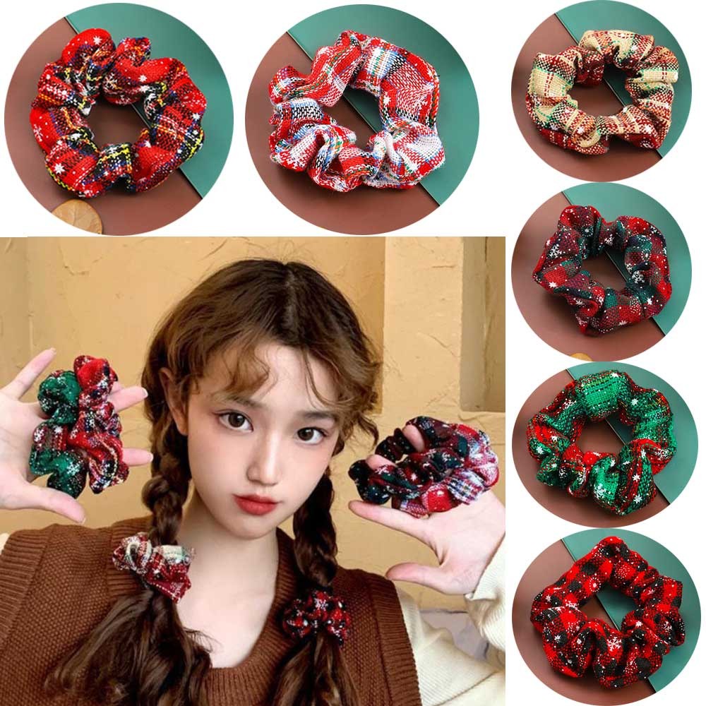 ยางรัดผม สีแดง สีเขียว แบบเรียบง่าย สไตล์วินเทจ แฟชั่นคริสต์มาส