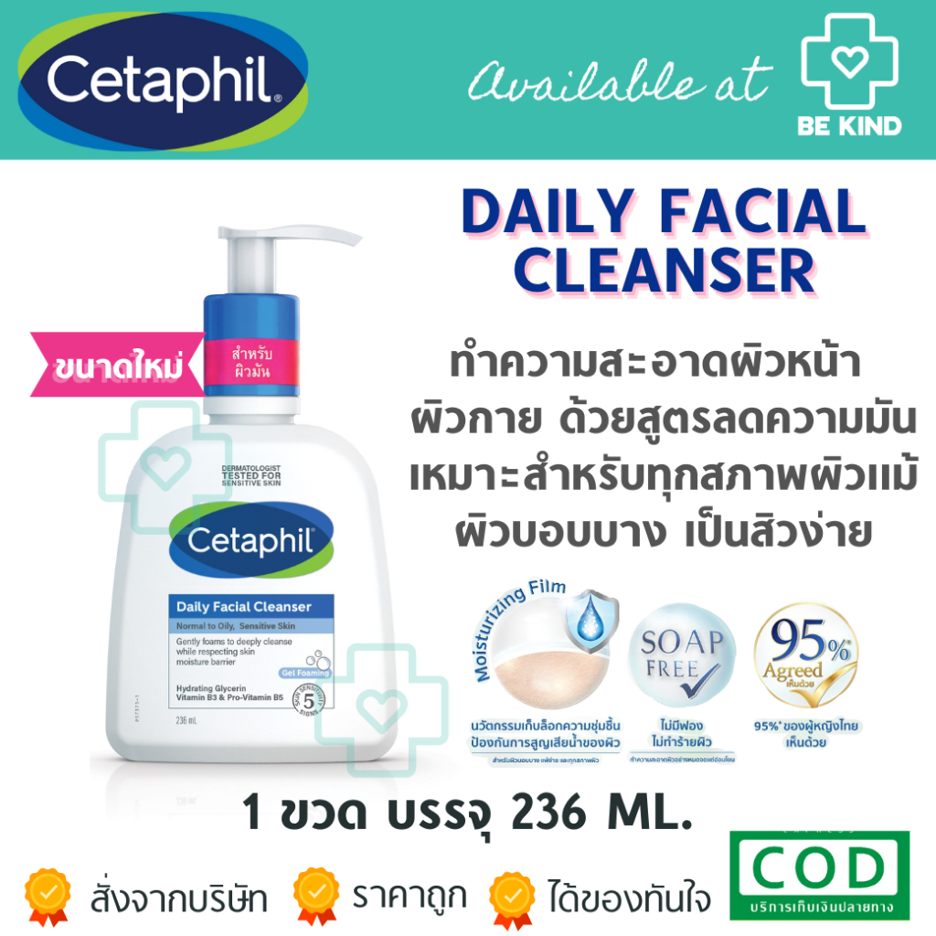 [ฟรีกระจกพกพา] Cetaphil Daily Facial Cleanser [ Oily ] 236ML. เซตาฟิล