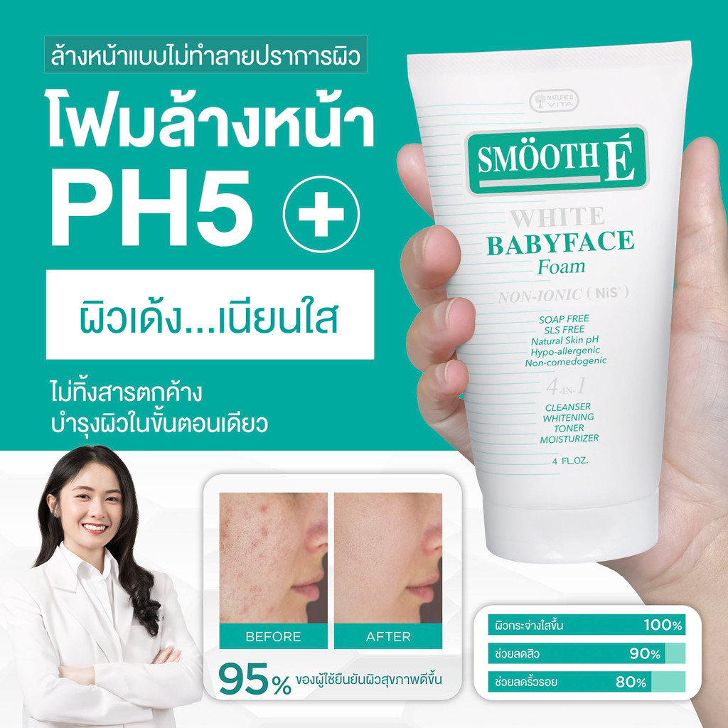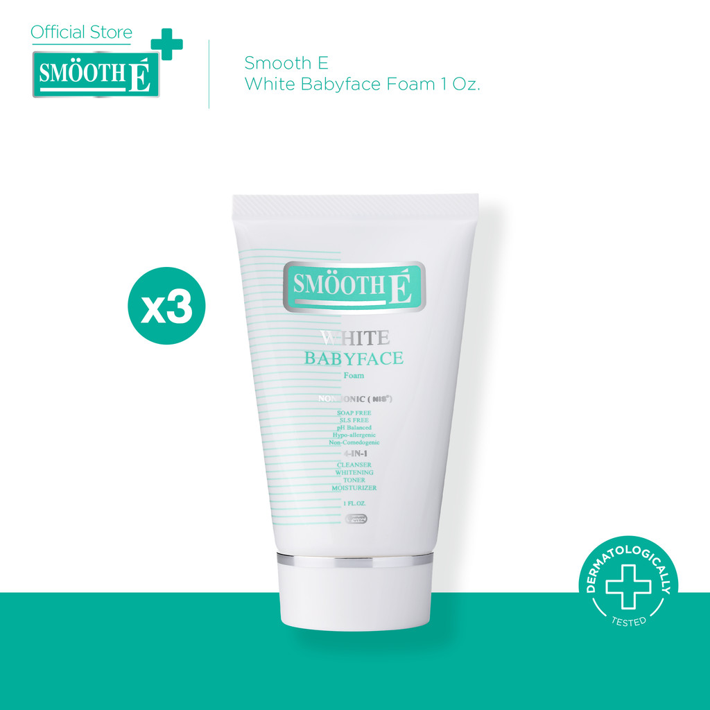 [แพ็ค3สุดคุ้ม] Smooth E White Babyface Foam 1 Oz. สมูทอี ไวท์ เบบี้เฟส โฟม pH5 Vit C&E ผิวกระจ่างใส สำหรับผิวหมอง