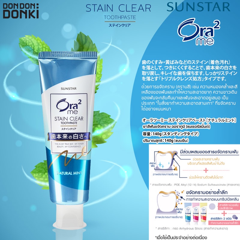 Ora2 me STAIN CLEAR Toothpaste A2 Natural Mint / ยาสีฟันผสมฟลูออไรด์