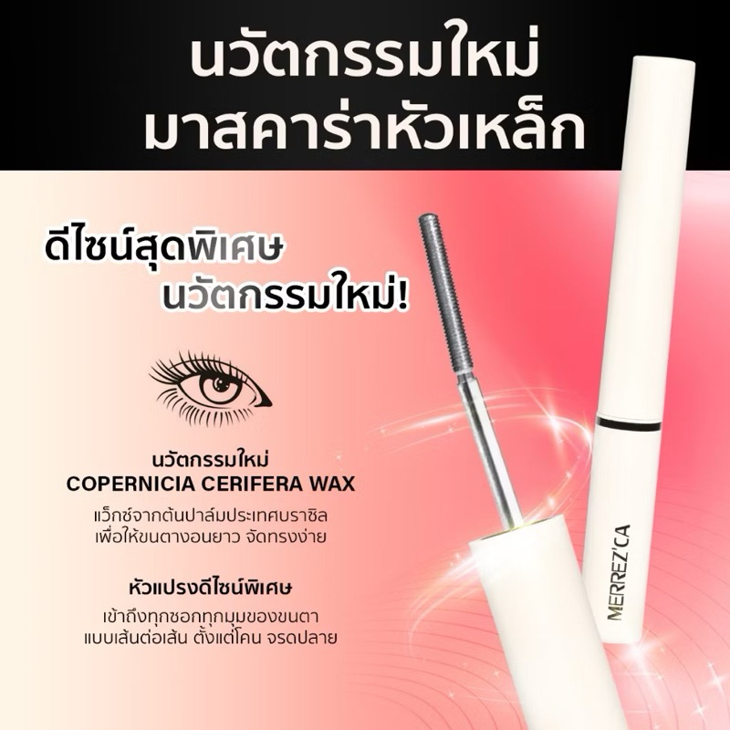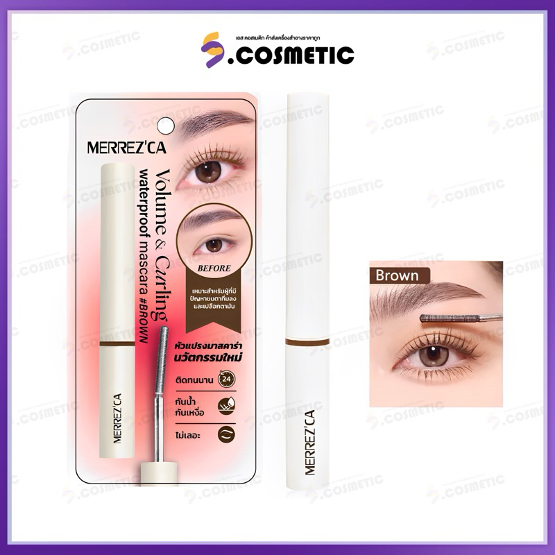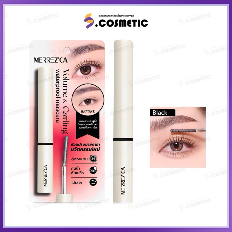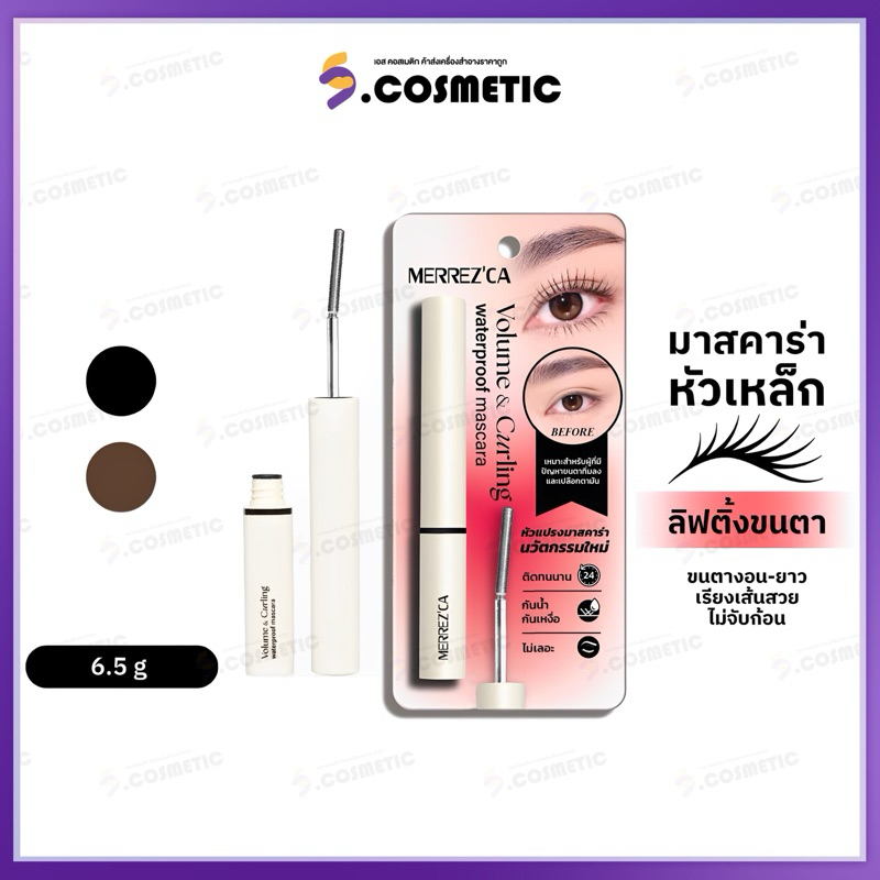 Merrez'Ca เมอร์เรซกา วอลลุ่ม แอนด์ เคอร์ลิ่ง วอเตอร์พรูฟ มาสคาร่า 6.5 ก. สีดำ / สีน้ำตาล
