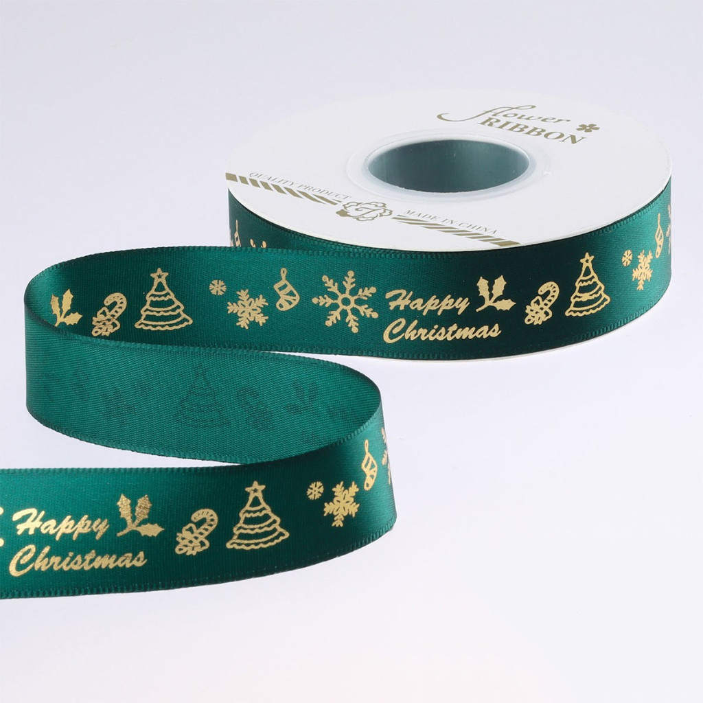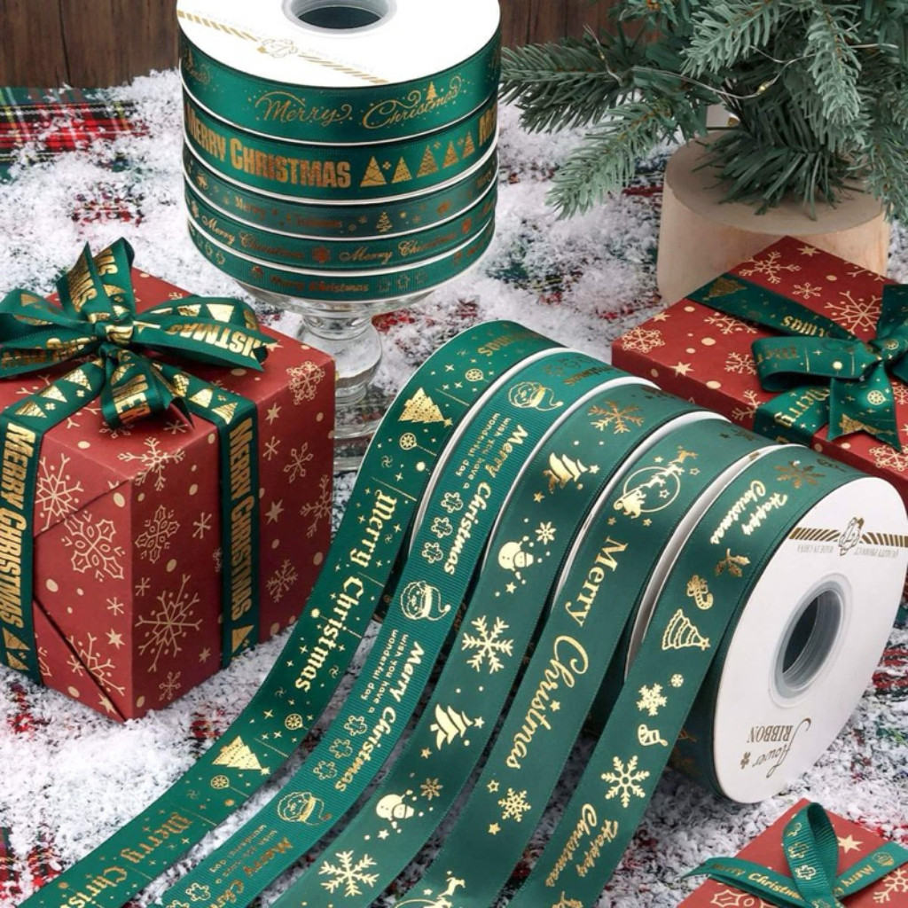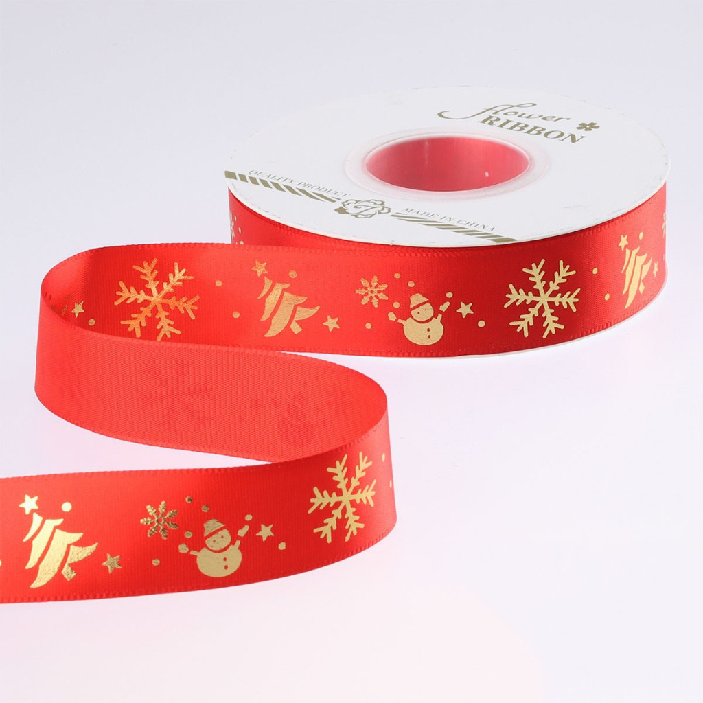 ริบบิ้นคริสต์มาส ริบบิ้นผ้าซาติน ขนาด 2.5 ซม. ยาว 25 หลา สำหรับตกแต่งของขวัญคริสต์มาส ห่อดอกไม้
