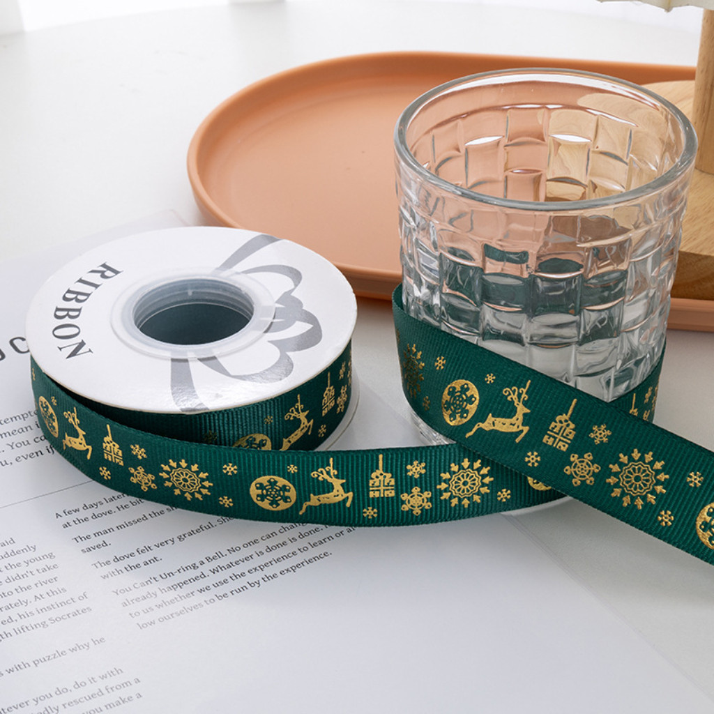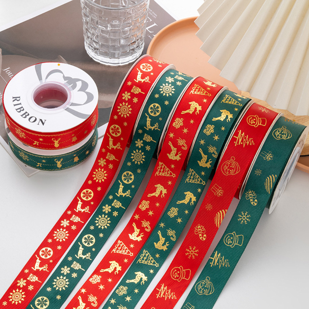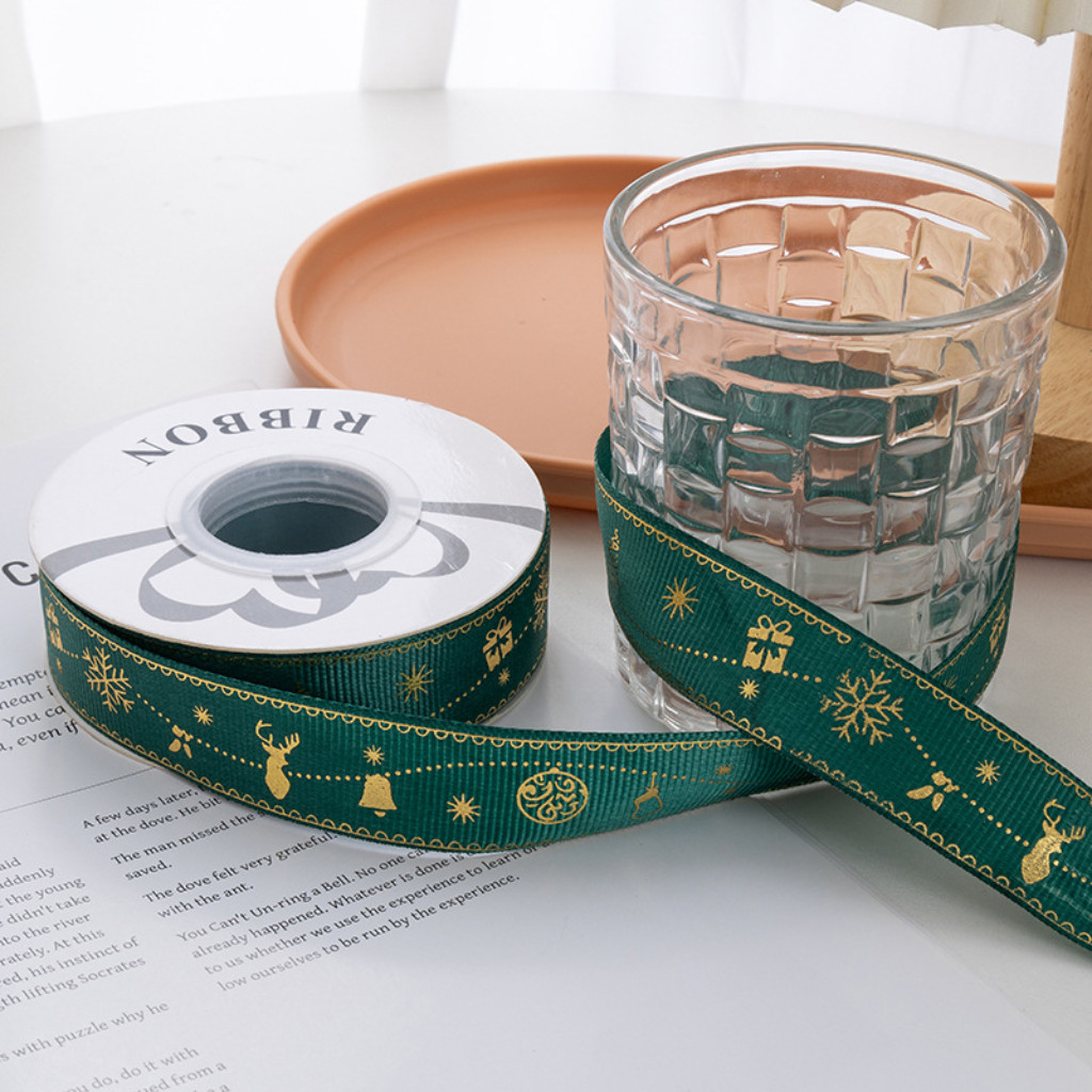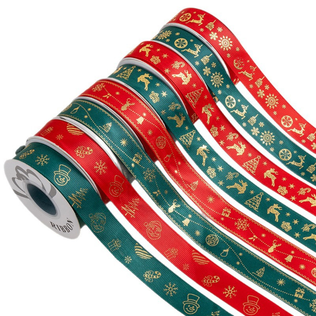 ริบบิ้นคริสต์มาส ริบบิ้นผ้าซาติน ขนาด 2.5 ซม. ยาว 25 หลา สำหรับตกแต่งของขวัญคริสต์มาส ห่อดอกไม้