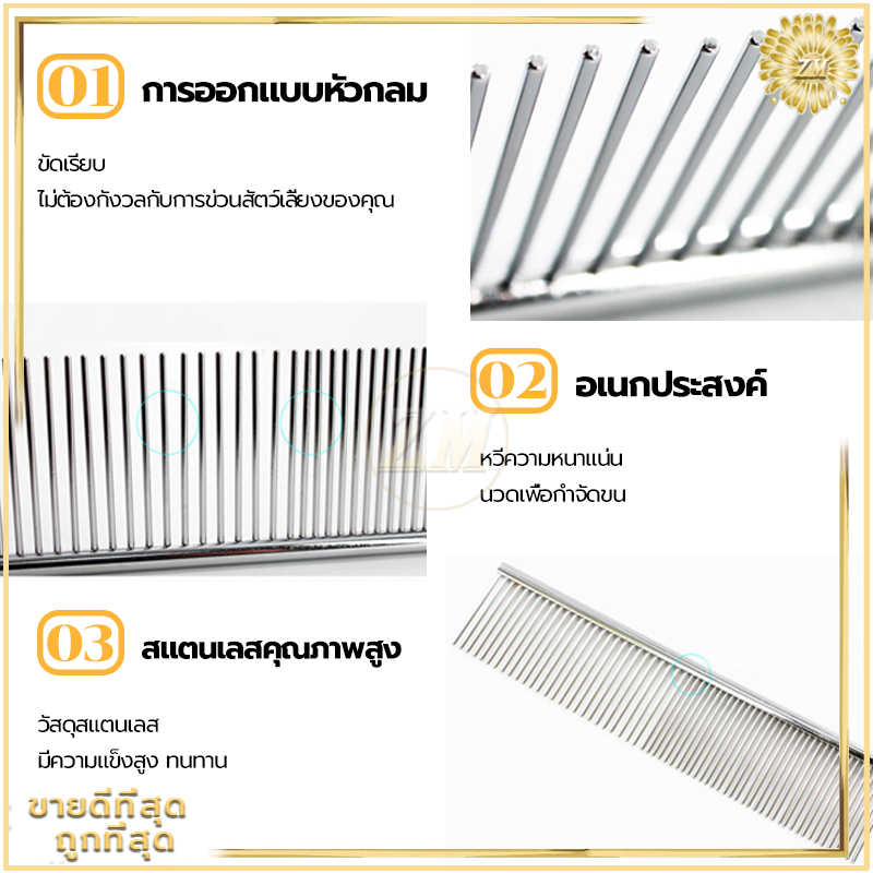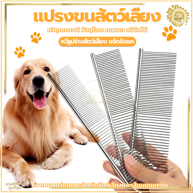 แปรงขนแมว ขนสุนัข 2 ใน 1 หวีแบบสแตนเลส ใช้เก็บขนสัตว์เลี้ยง 2 ด้าน ปลายตัด ไม่แหลมและลดการระคายเคืองผิว