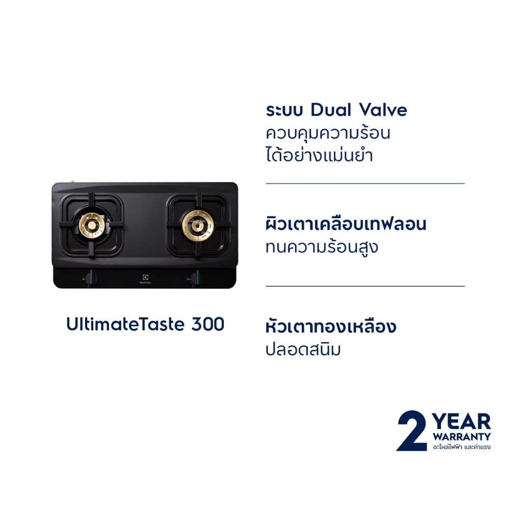 ELECTROLUX UltimateTaste 300 รุ่น ETG728TL เตาแก๊สตั้งโต๊ะ 2 หัว ขนาด 70 ซม. สเตนเลสสตีล