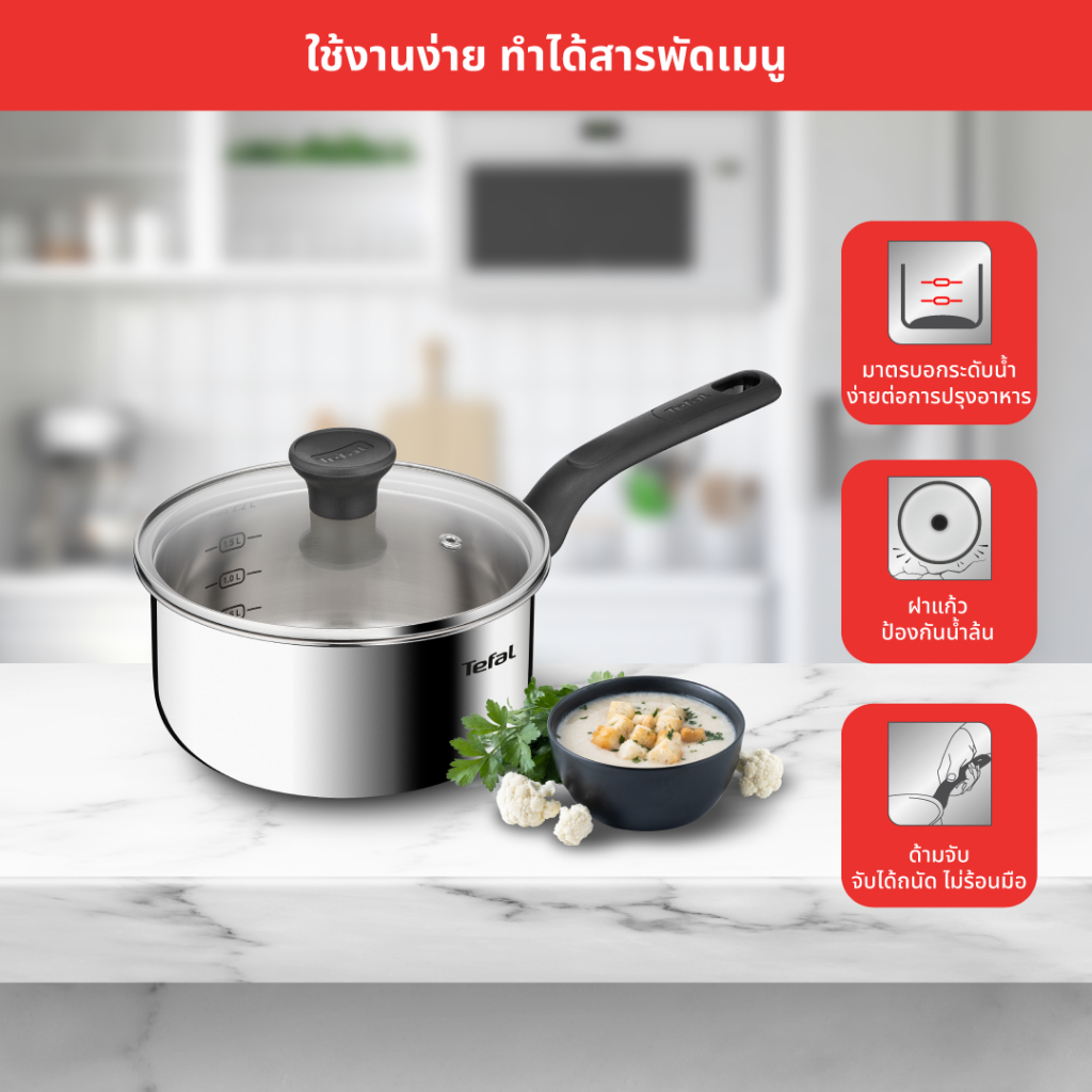 Tefal หม้อด้าม Starter Saucepan ขนาด 18 cm. พร้อมฝาแก้ว รุ่น E3252395